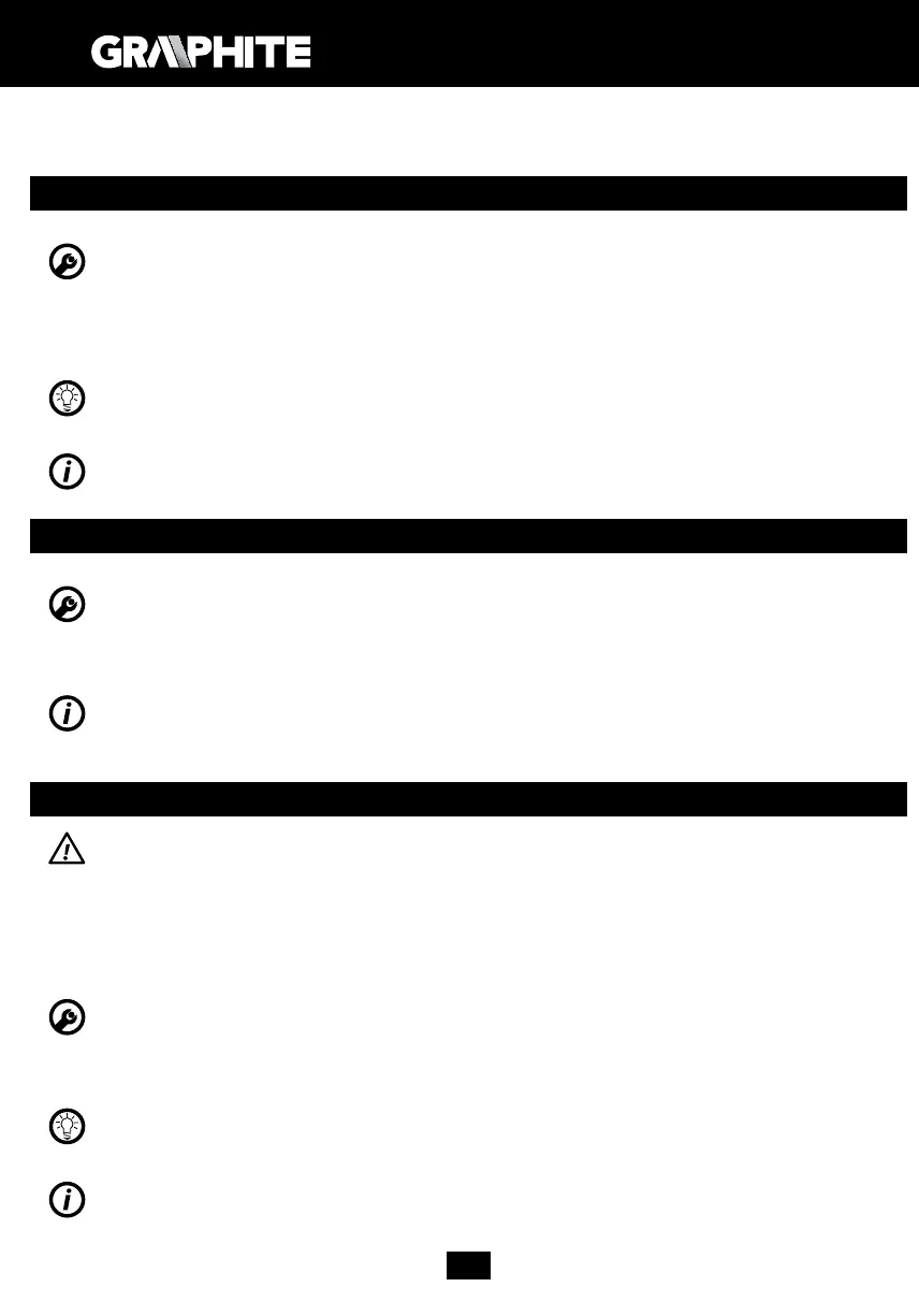 Nel caso di eccessive scintille nel commutatore, controllare lo stato delle spazzole in grate del motore.. ●