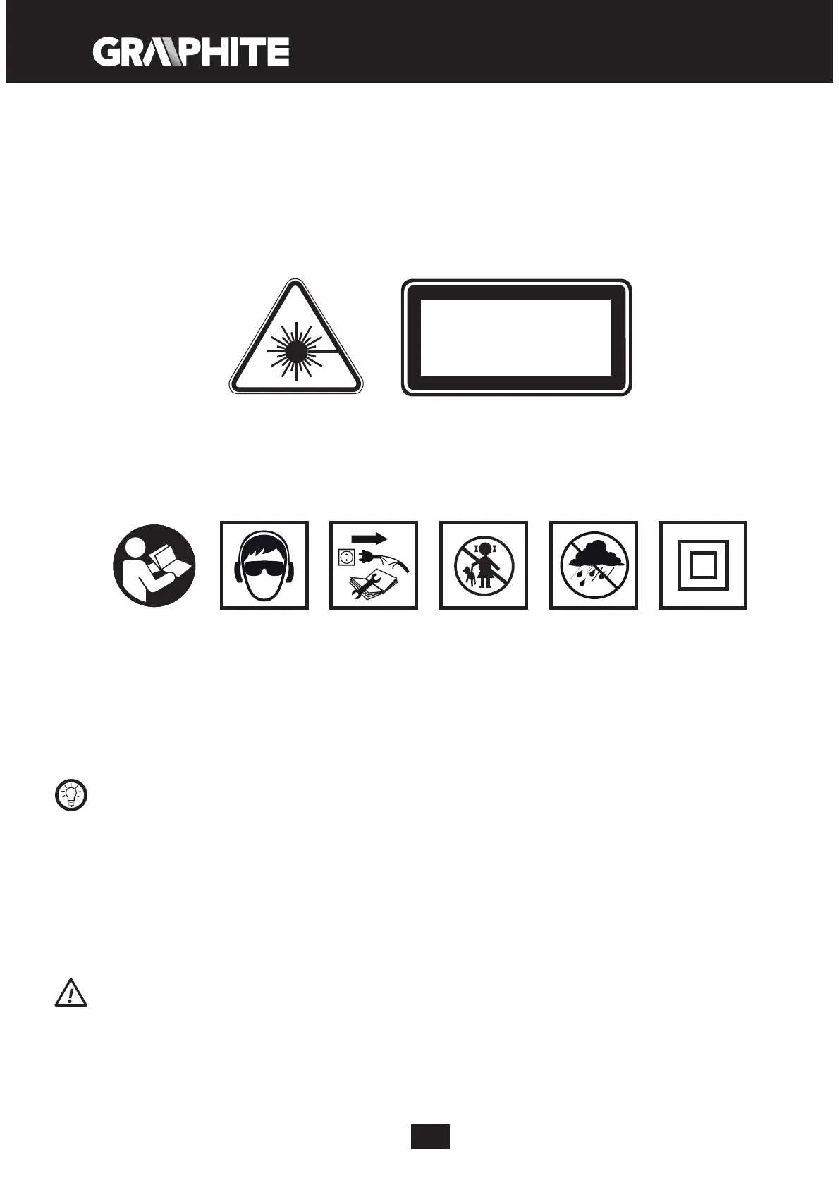 Ɣ Never deliberately or unintentionally point the laser beam at people, animals or any other object than