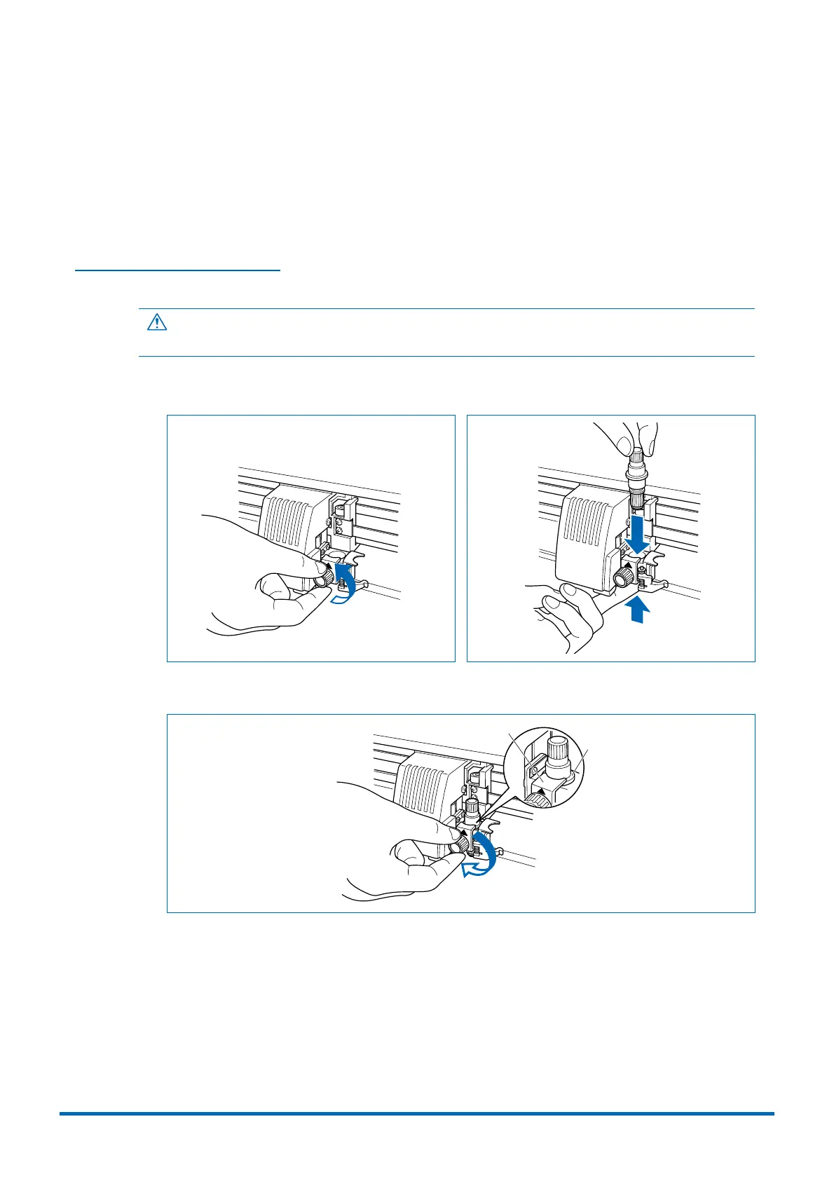 After the blade length has been adjusted, mount the cutter pen in the cutting plotter.