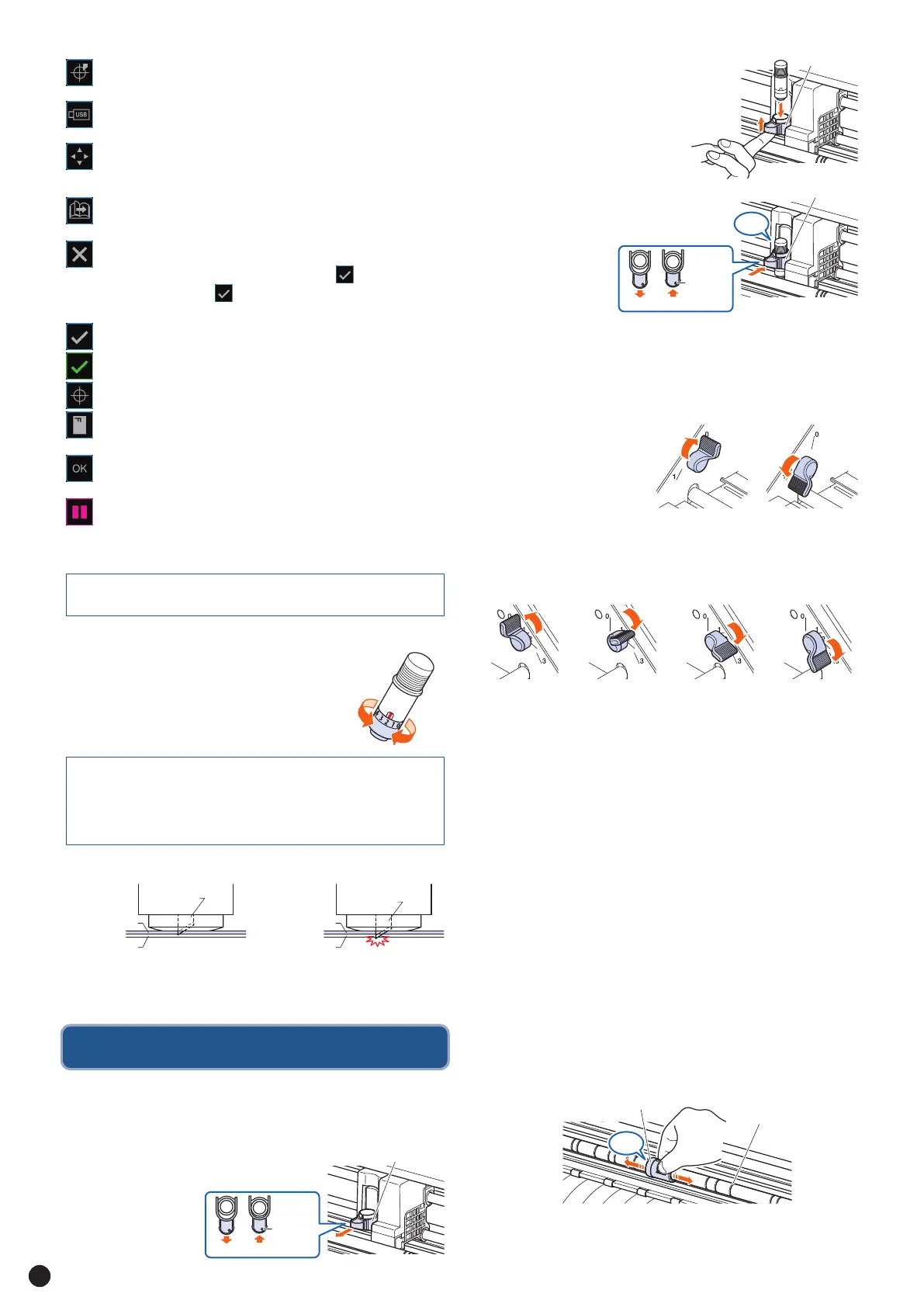 커팅매트를 관통하지 않도록 블레이드 노출깊이를 조정하십시오.