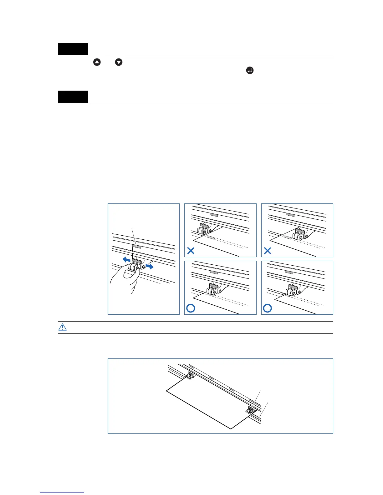 Adjust the position of the left- and right-hand push rollers to suit the medium width. Position the push roll-