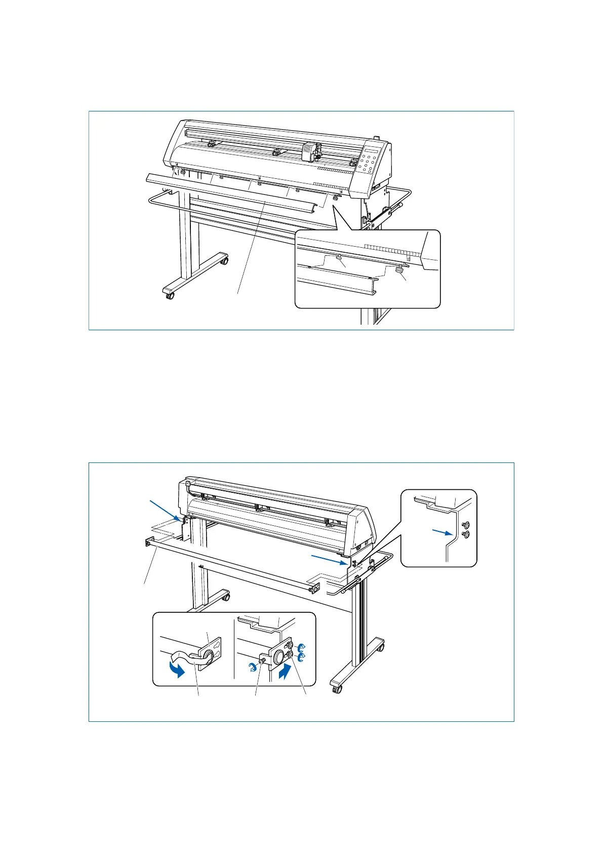 (5) Attach the media guide bracket to the underside of the front panel. Loosen the two decorative screws