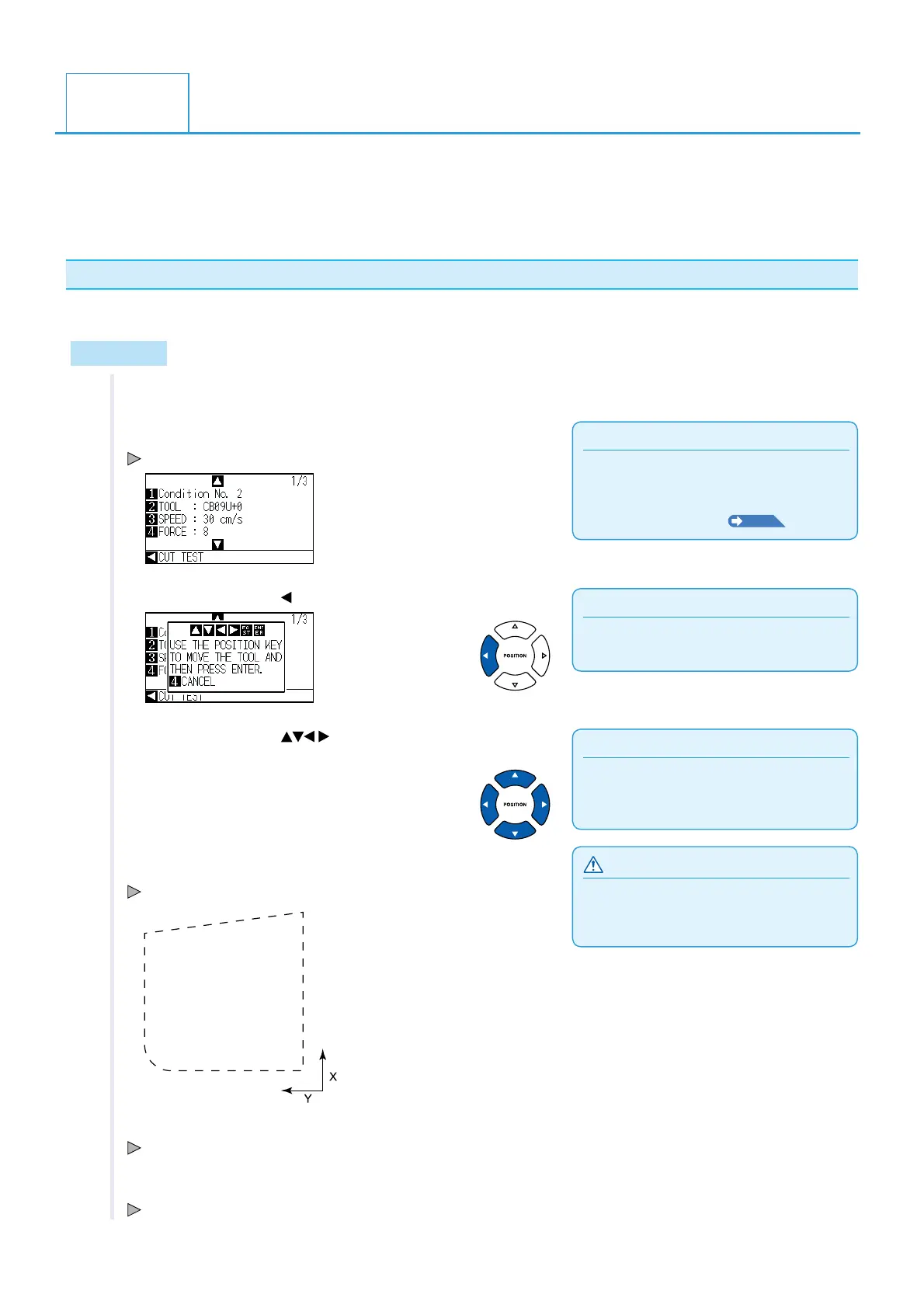 3 Press the POSITION ( ) key (CUT TEST).
