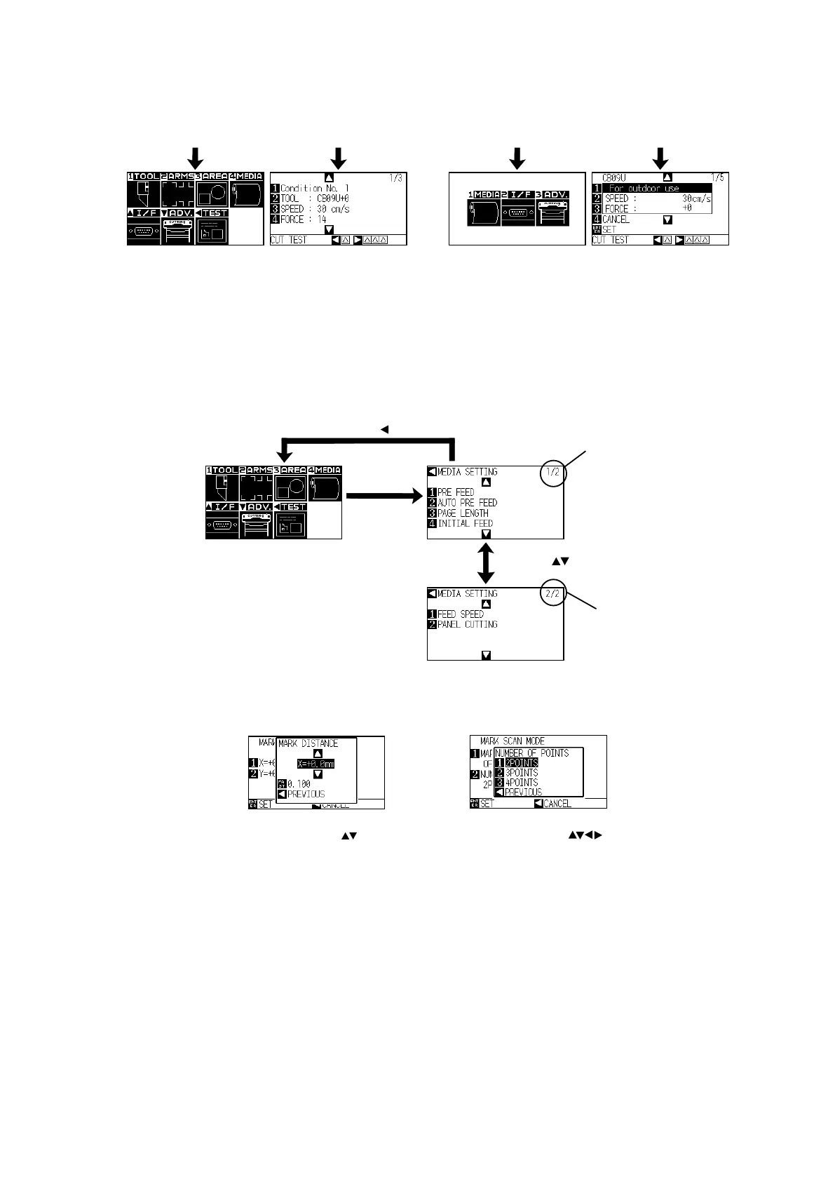 Screen to set the corresponding conditions is displayed when the [PAUSE/MENU] key or [COND/TEST]