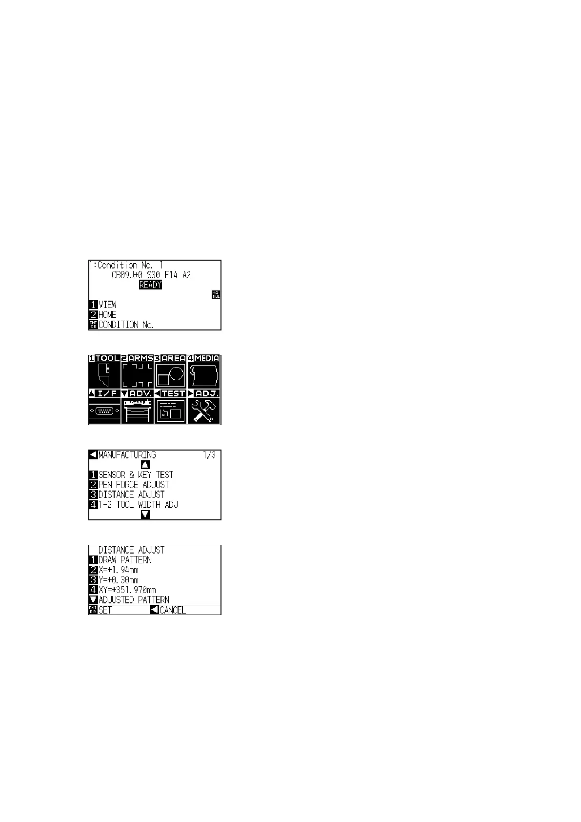 (8) Press the F3 key (DISTANCE ADJUST) to display the following menu.