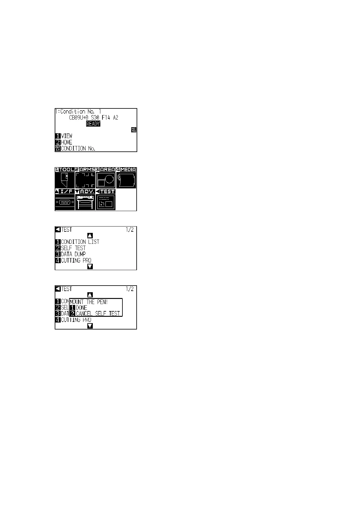(4) The following menu is displayed, and then press the left arrow key (TEST).