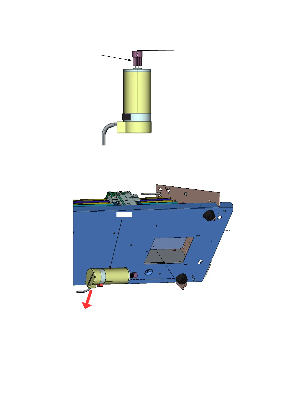 (7) Use the force gauge to push down the X-drive motor pulley ange with a 1.8 kg to 2.0 kg force.