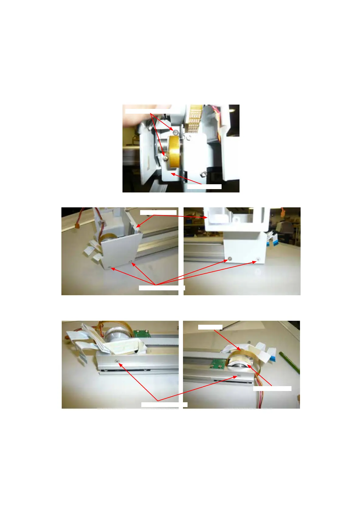 (7) Remove the two M3L6 at head screws holding the Y drive belt pulley, and then detach it.
