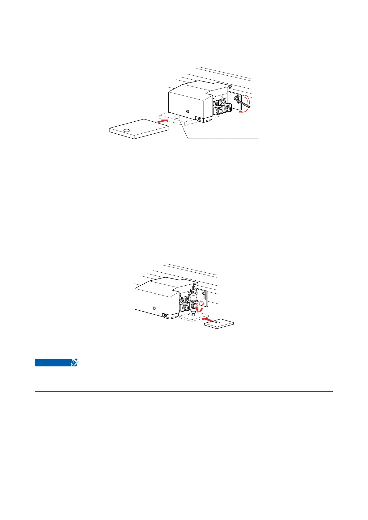(2) Insert the height adjustment plate (thin) under the pen and adjust the height.