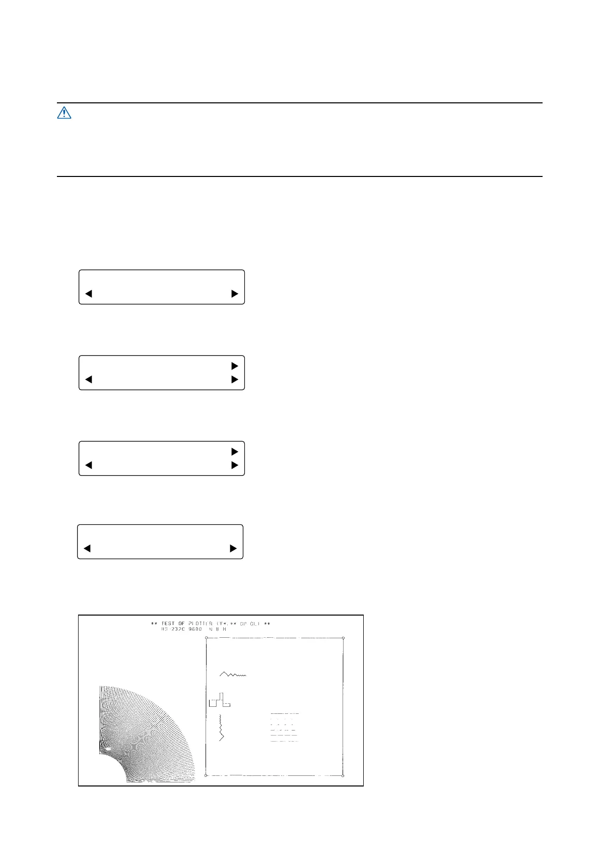 The pen carriage starts moving as soon as the SELF TEST mode has been selected. To avoid any injury