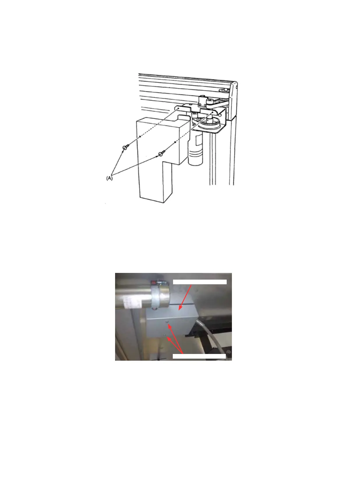 (1) Remove the two M3 binding head screws indicated by the (A) arrows, then remove the X motor cover.