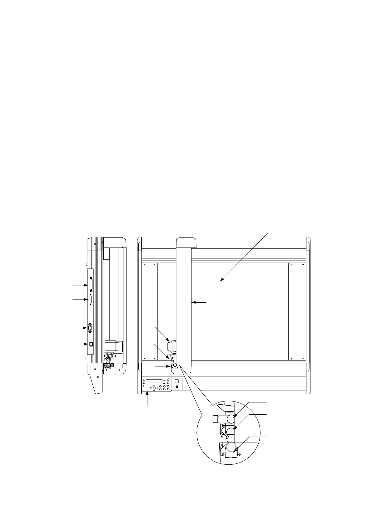 (7) Centronics parallel interface : Used to connect the plotter to a computer by cable via the Centronics-