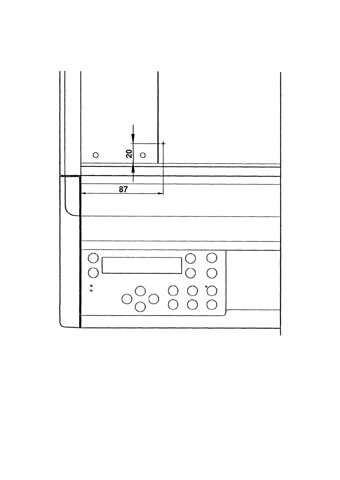 Adjust the drawing origin to a position (87 mm, 20 mm) from the left edge of the XR rail.