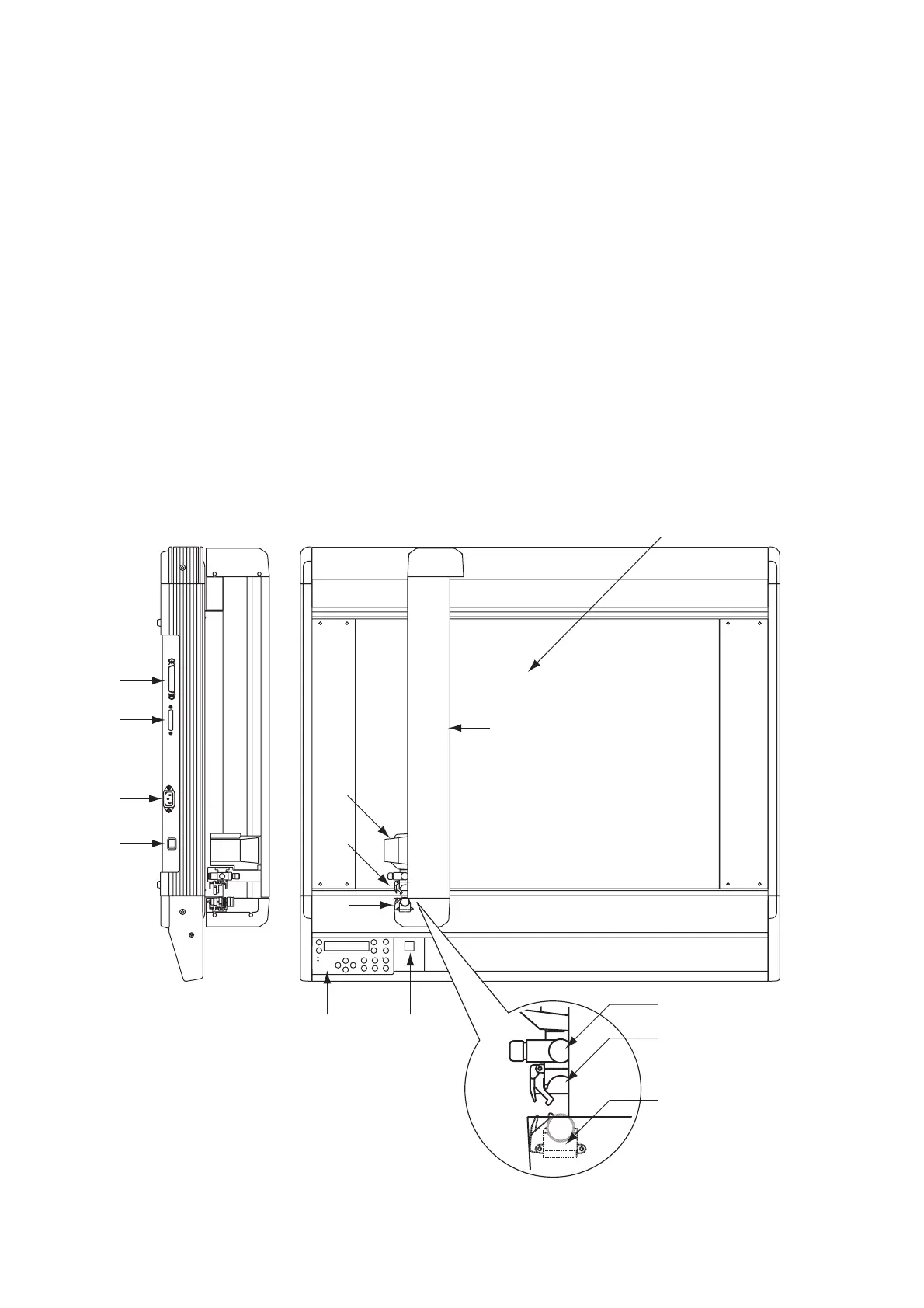 (7) Centronics parallel interface : Used to connect the plotter to a computer by cable via the Centronics-