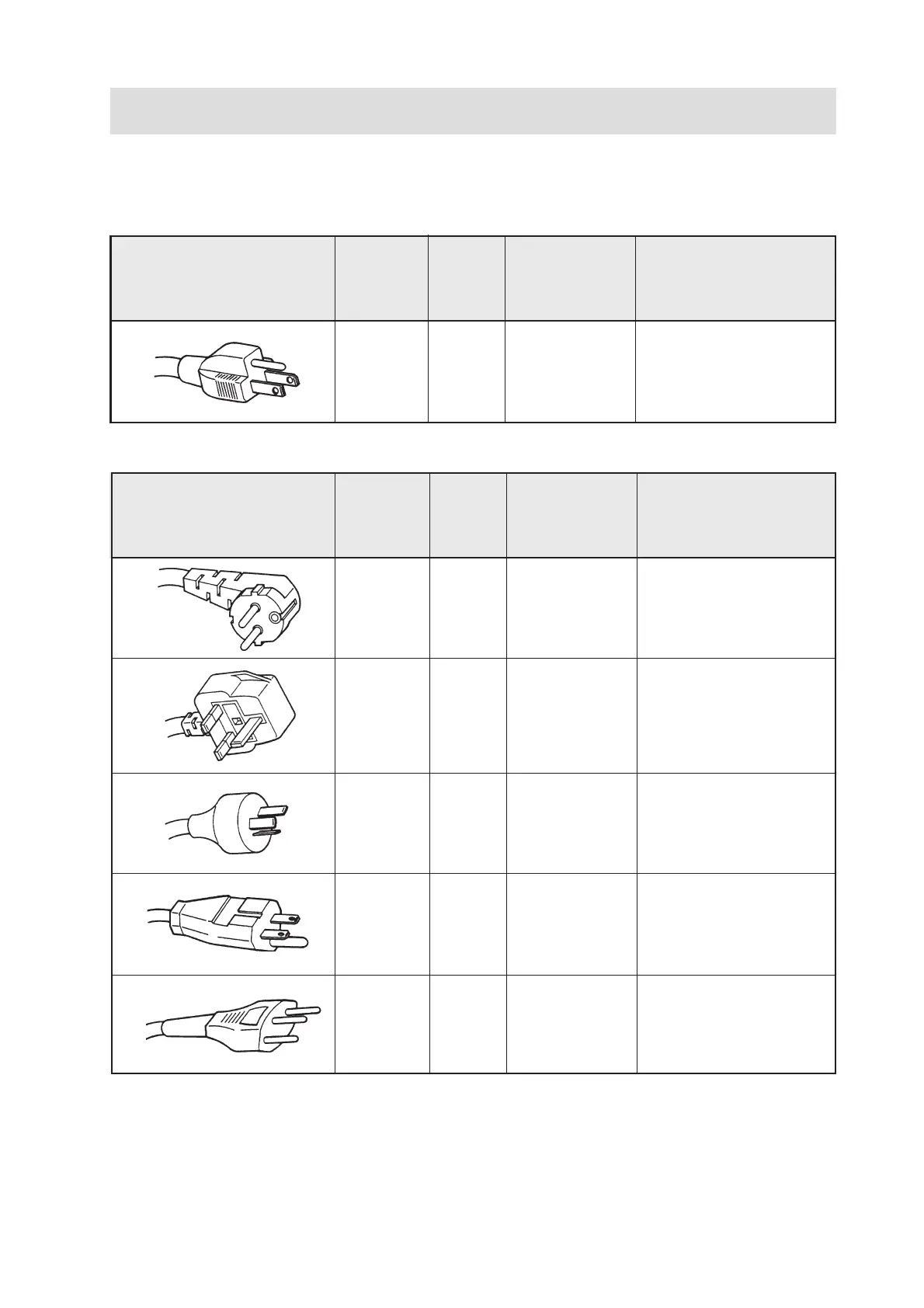 Be sure to refer to the following tables if you wish to use a cable other than the one supplied as an acces-