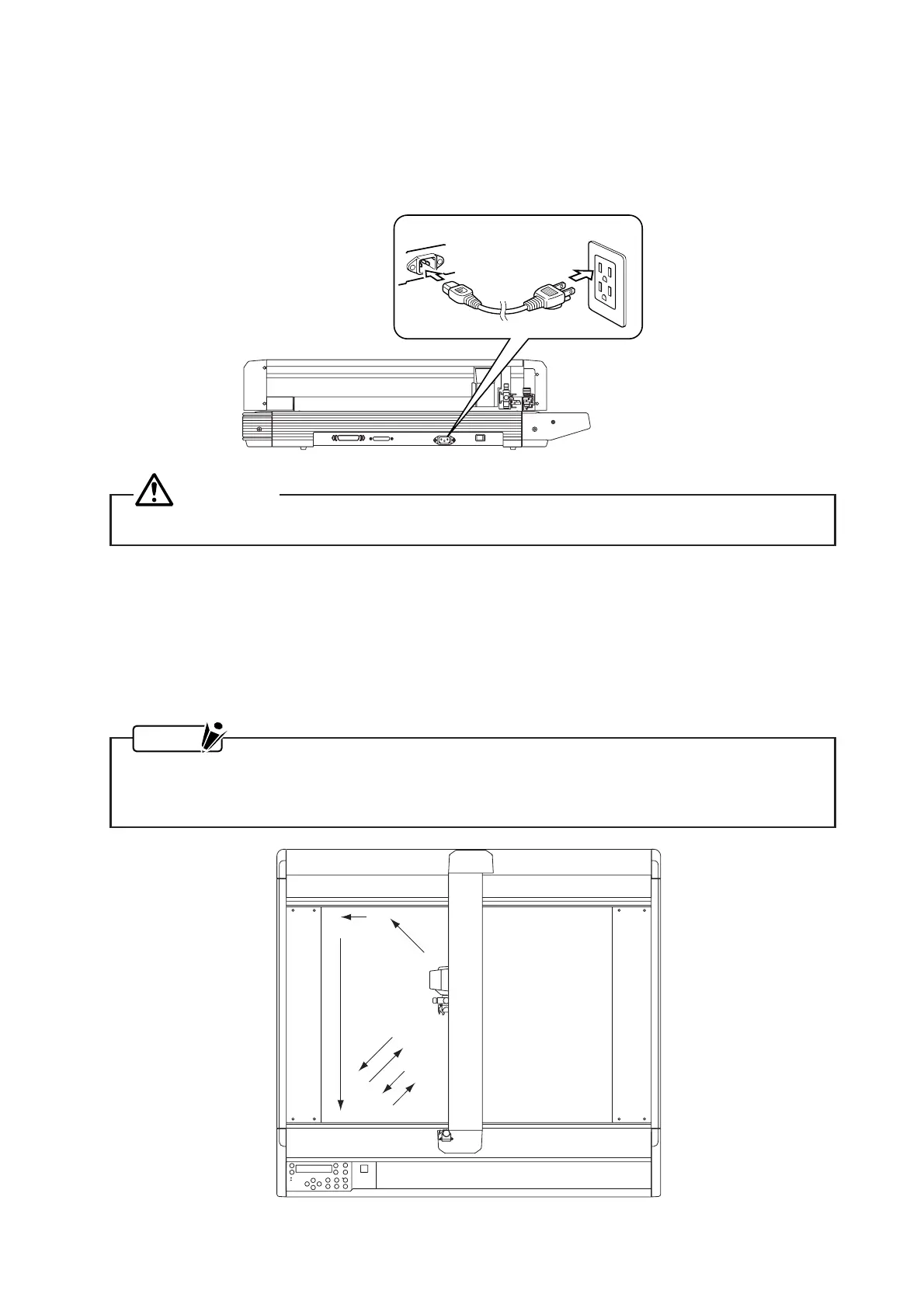 (3) After checking that both ends of the plotters power cord are securely connected, turn on the plotter by
