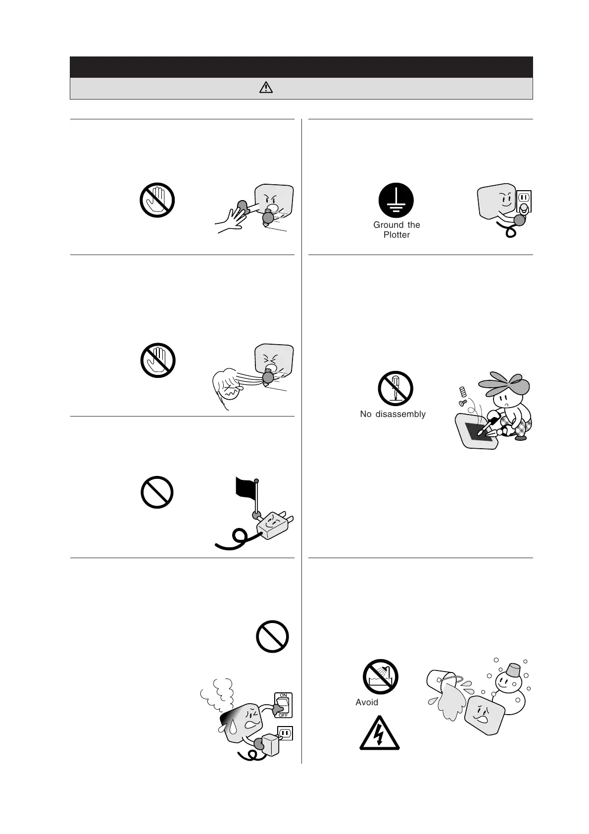 • If the plotter is not grounded, the operator could