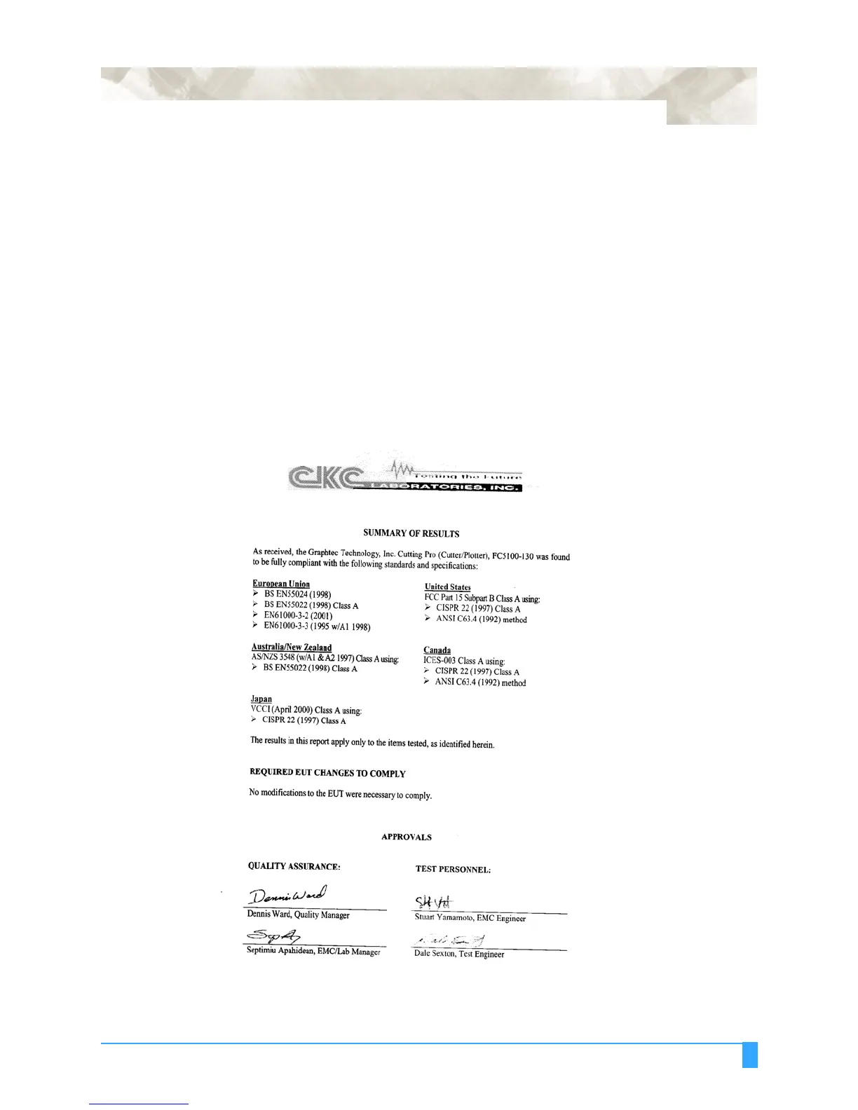Appendix: Compliance Information Statement