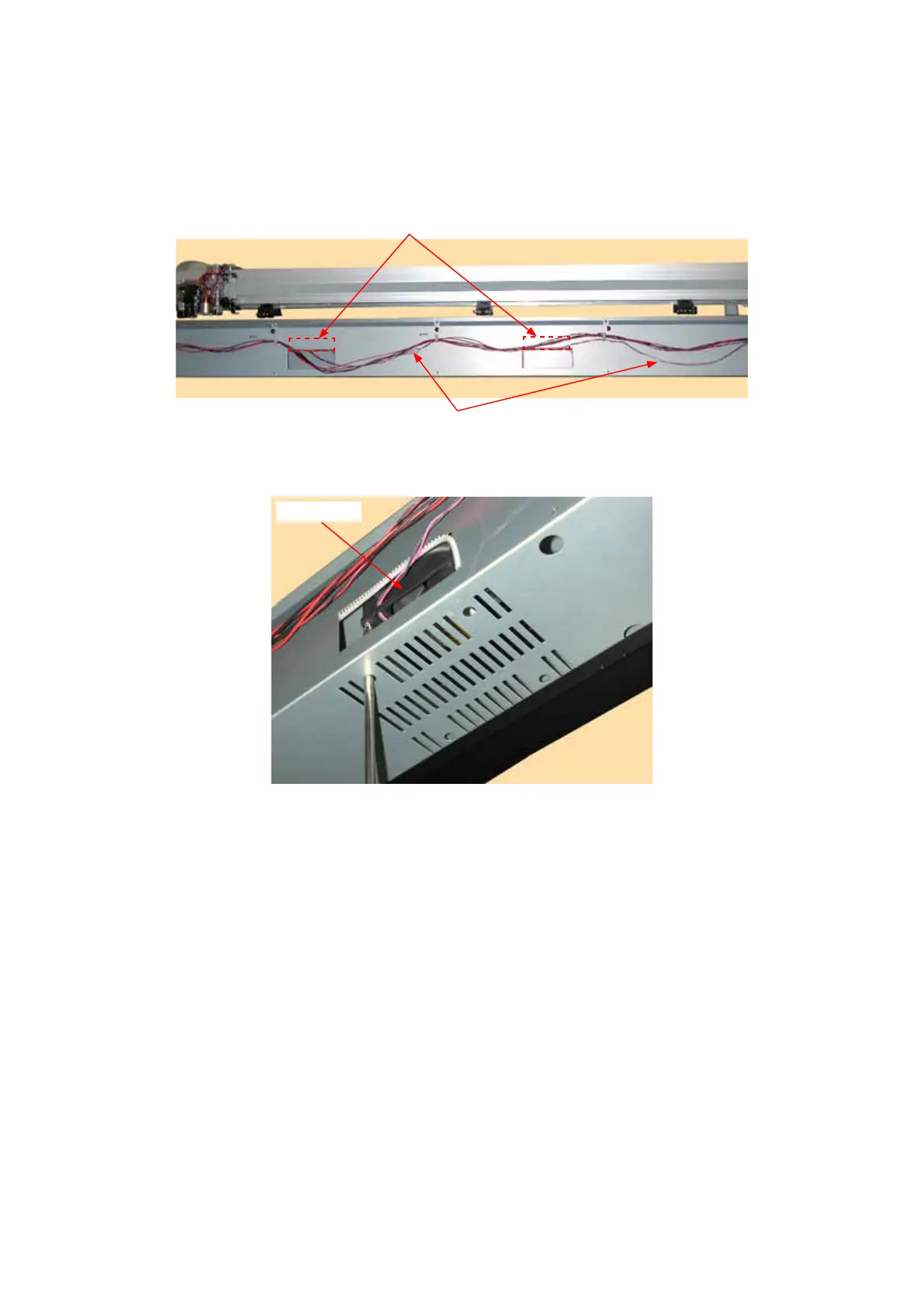 (3) Use a long screwdriver to remove the two M3L35 binding head screws holding the vacuum fan as