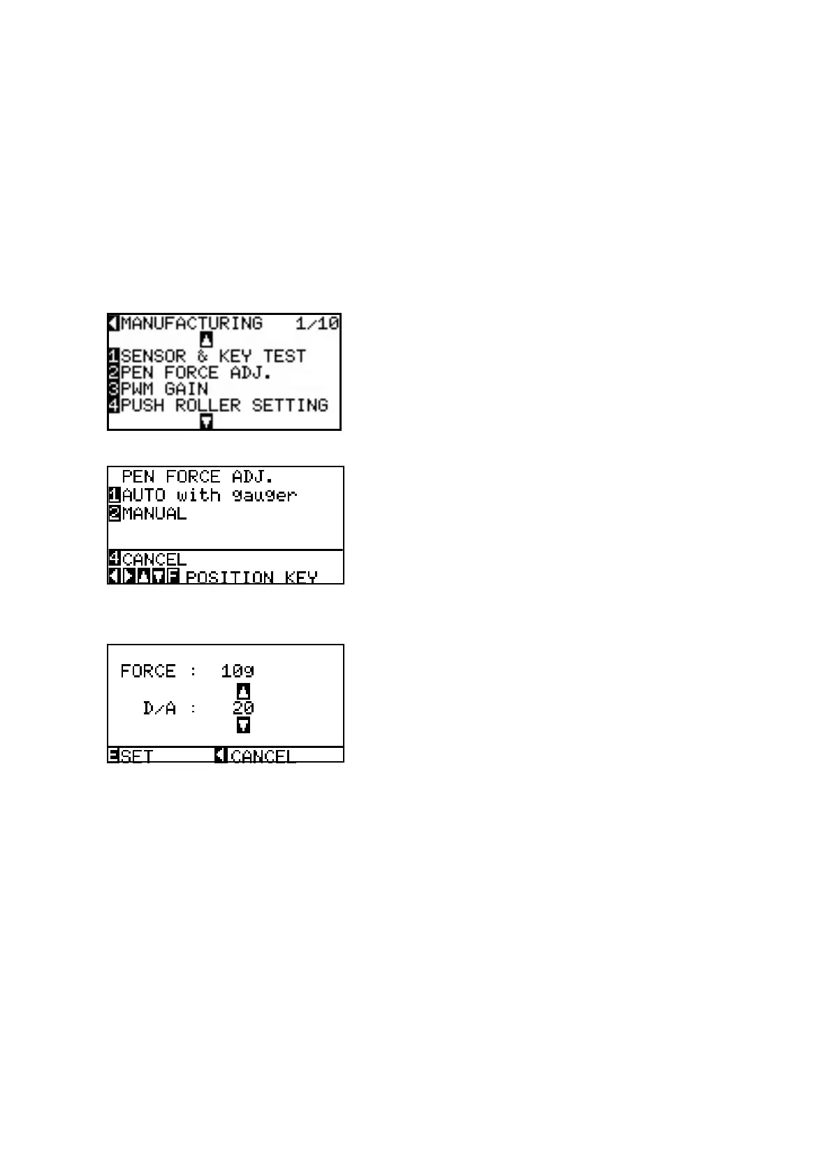 Use the UP ARROW key or DOWN ARROW key to change the force setting. The number on the LCD