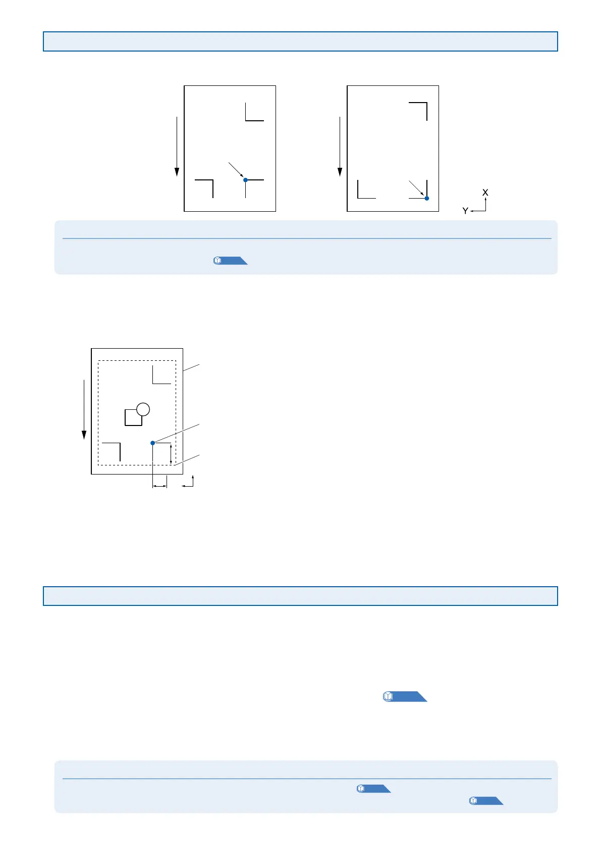 Use the axes adjustment function if the automatic registration mark scan is not possible. (See "Manual Position Adjust"