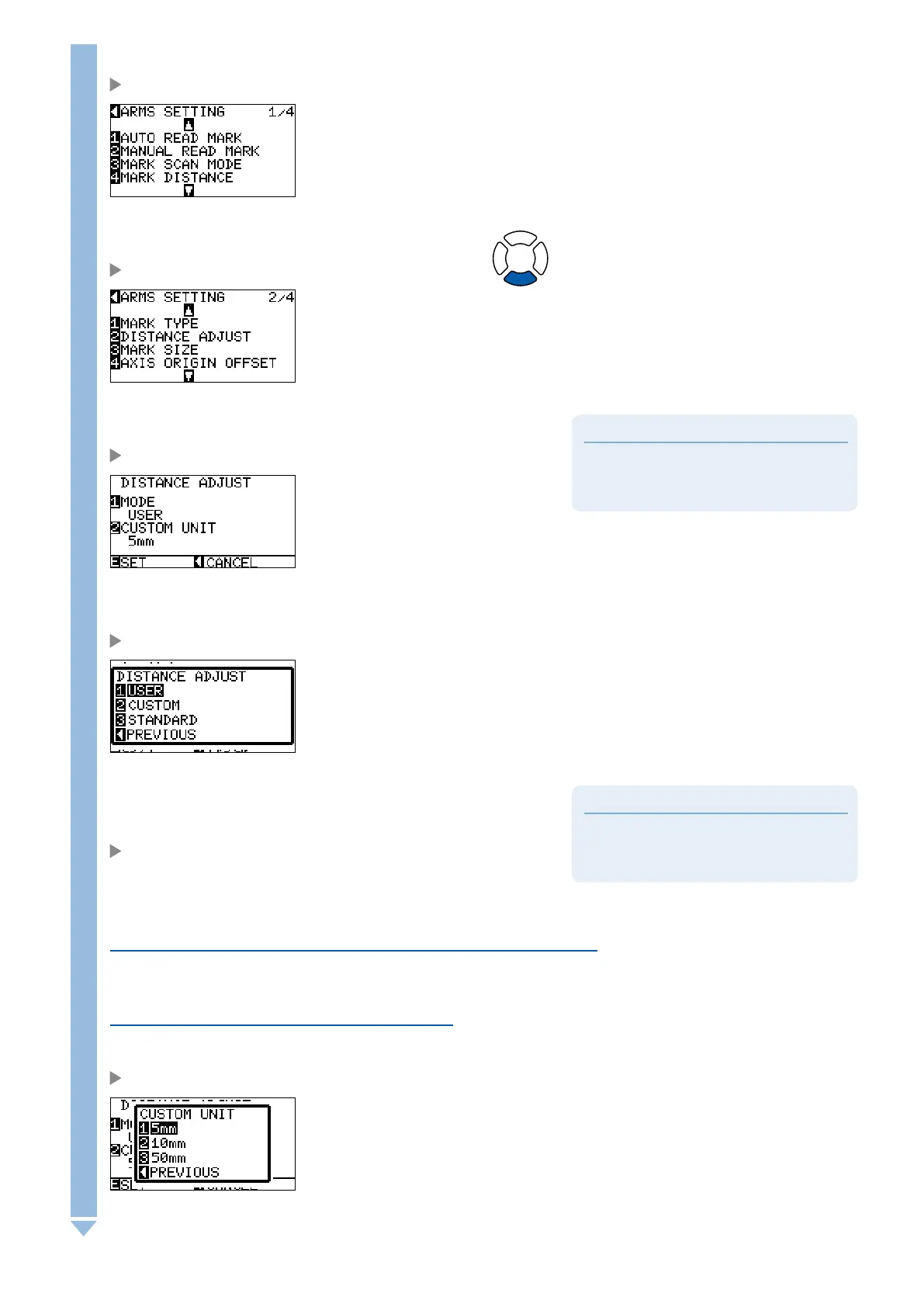 Mode is selected and it will return to DISTANCE ADJUST screen.