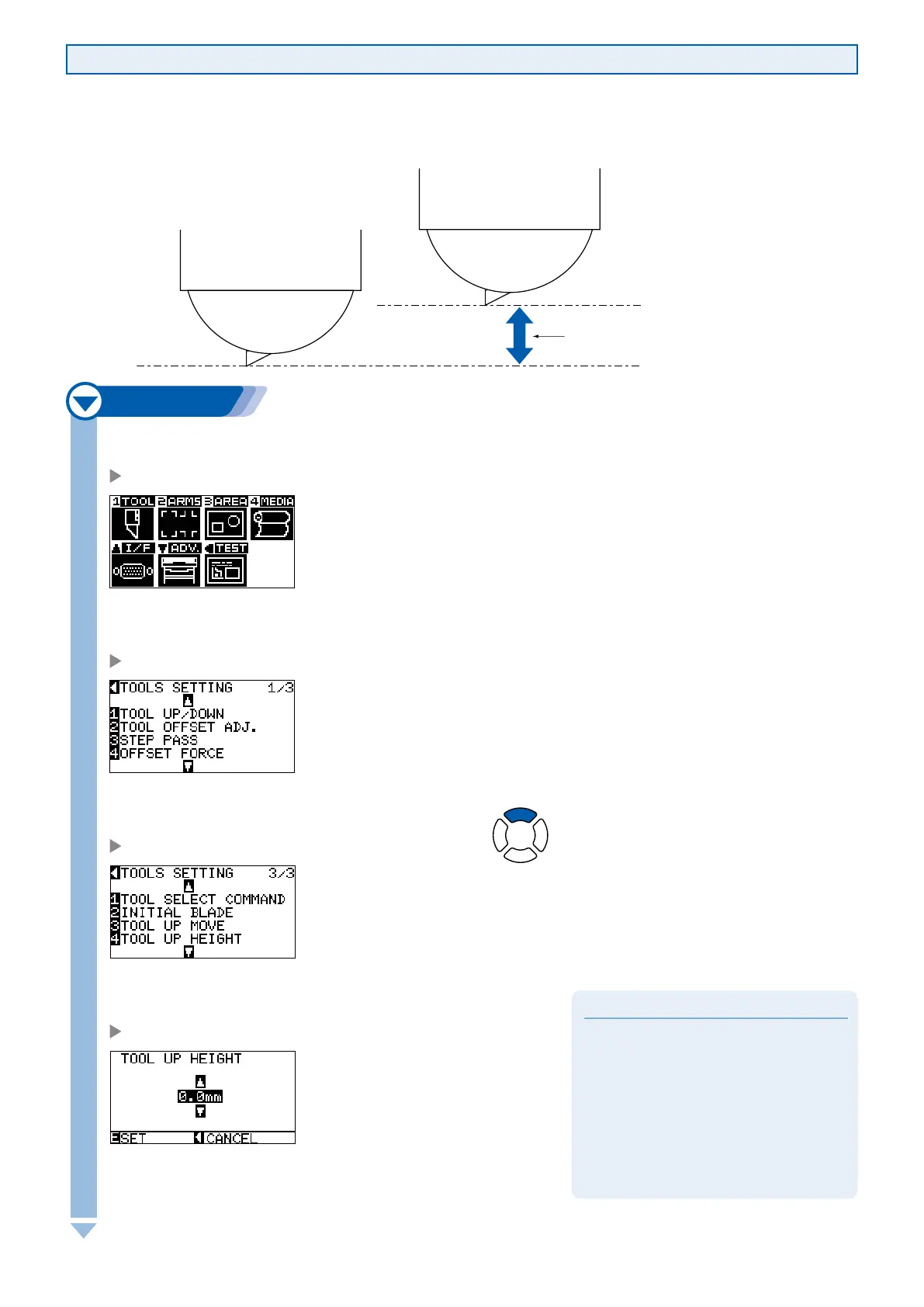 Leave the TOOL UP HEIGHT to default value (0) when using the media with normal thickness.