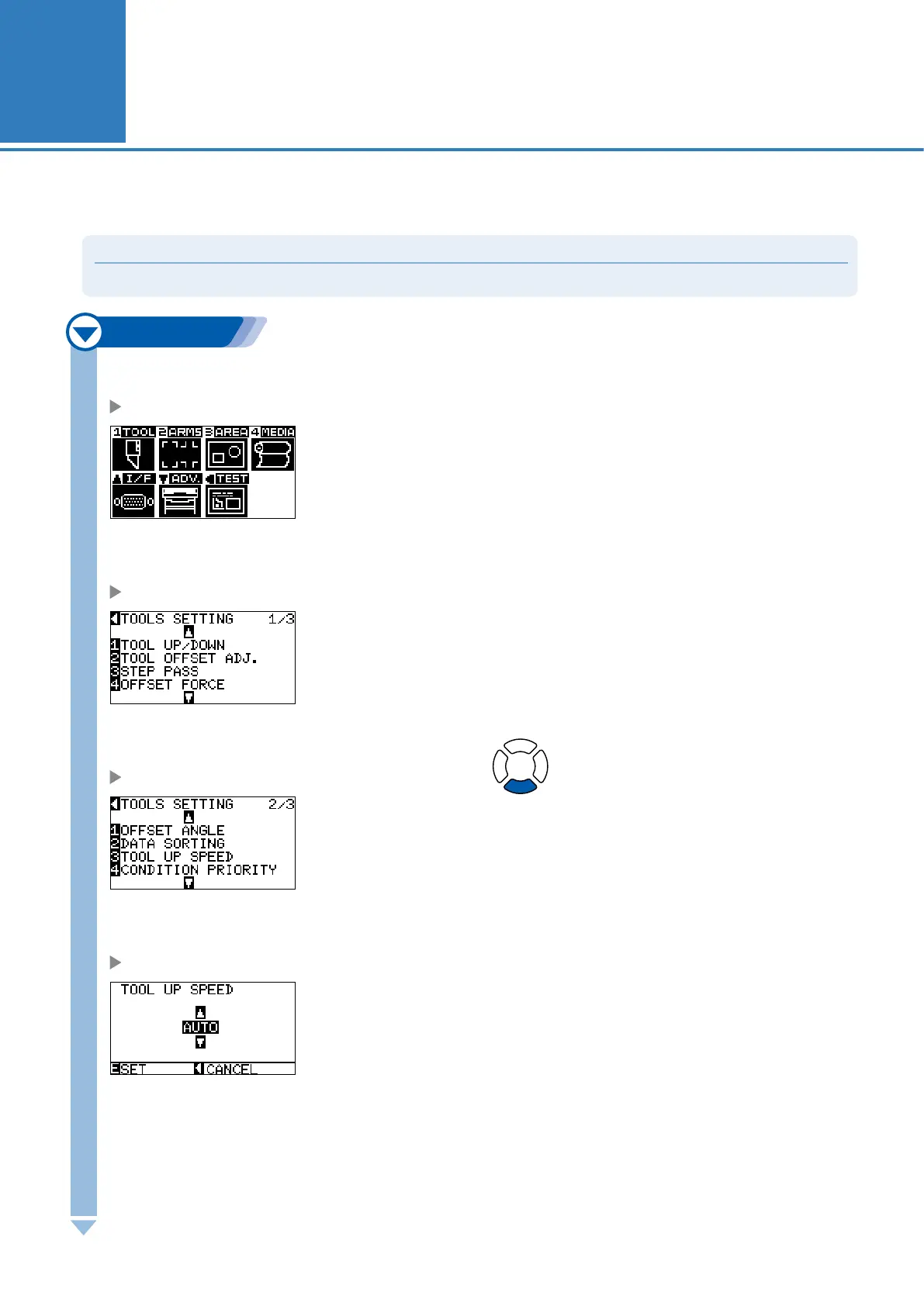 TOOL UP SPEED setting screen is displayed.