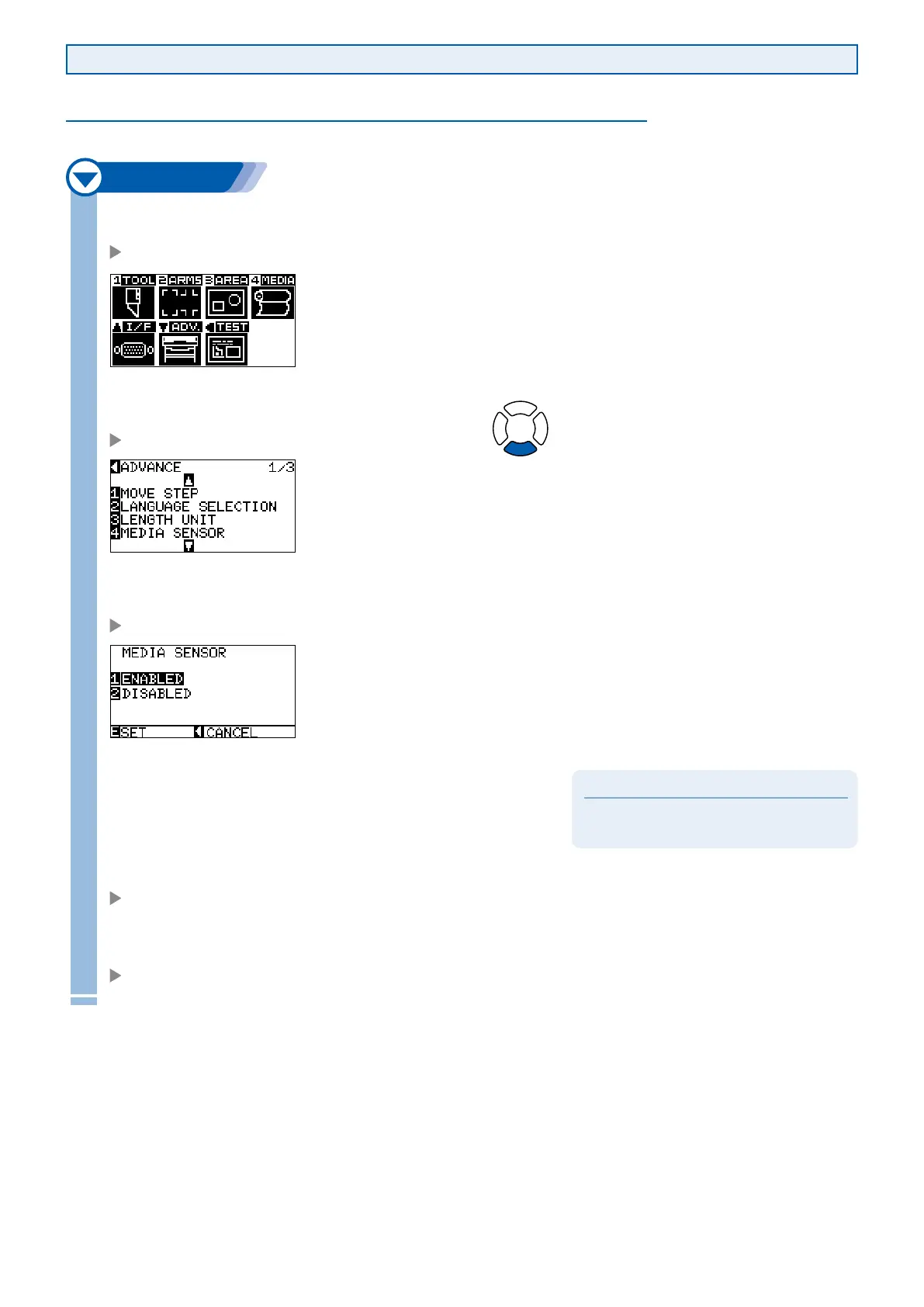 This function enables or disables the media sensors that detect the size of the medium in the feed direction.