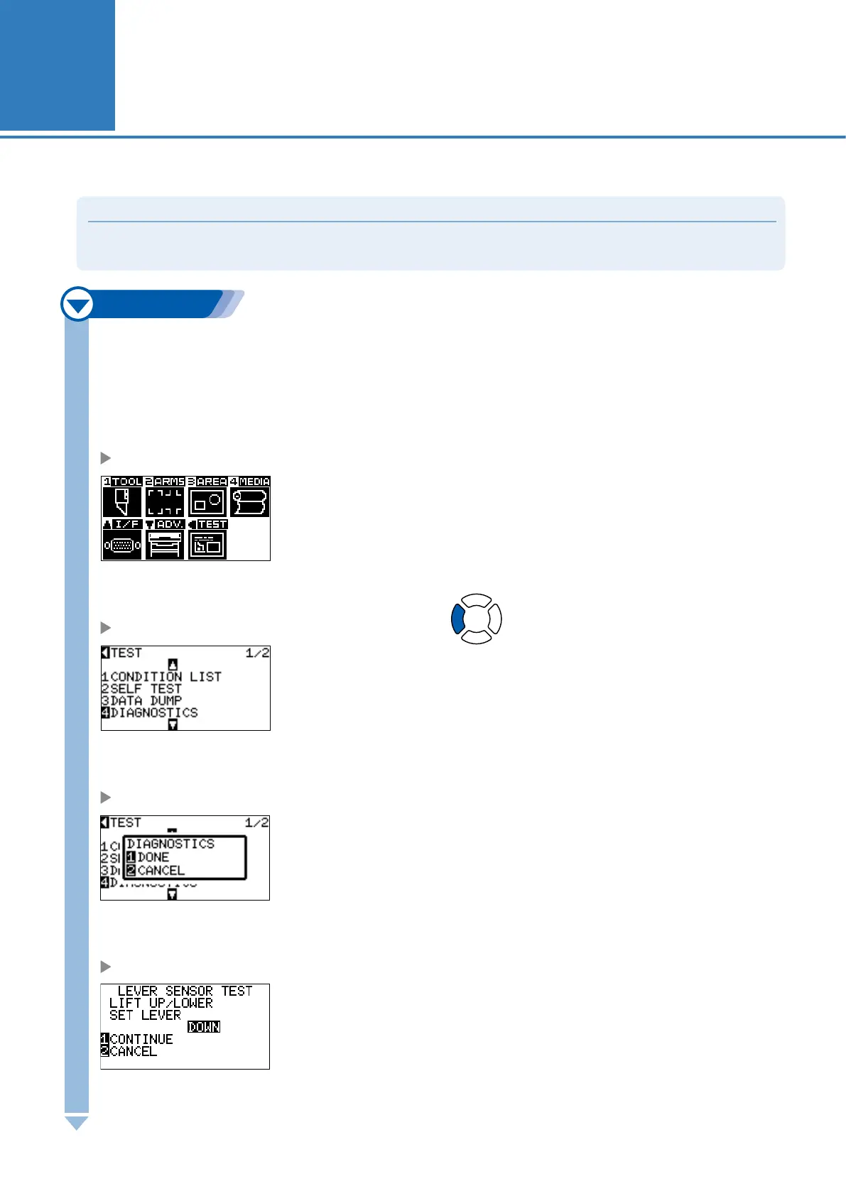 Diagnostic test can be performed only right after the power is turned on. DIAGNOSTICS cannot be selected from the menu once any operation,