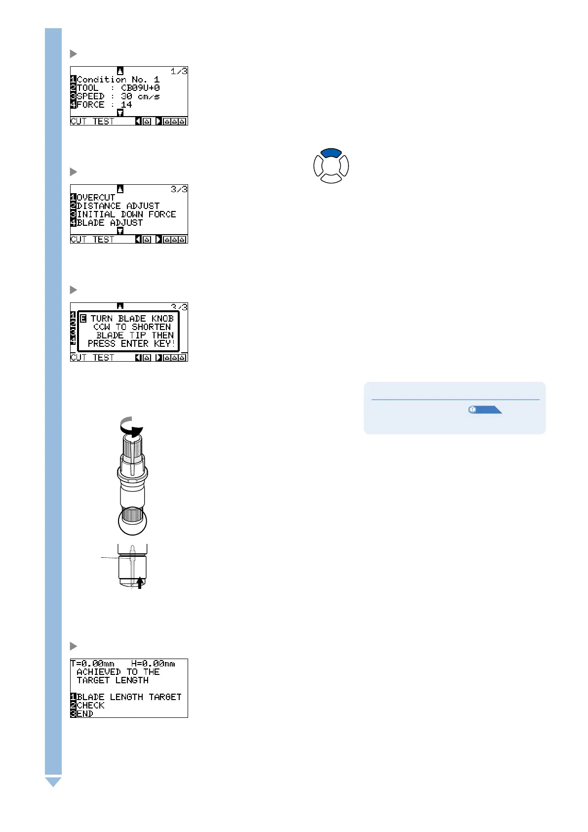 Message prompting to turn the blade-length adjustment knob is displayed.