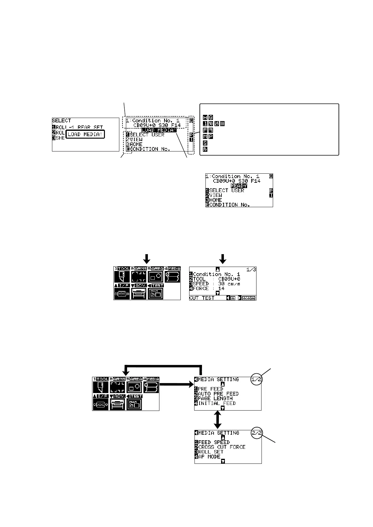Screen to set the corresponding conditions is displayed when the [MENU] key or [CONDITION] key are