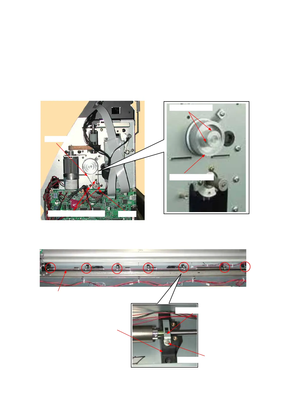 (5) Remove the two M3L4WP set screws holding the X-drive pulley and detach the X-drive pulley from the
