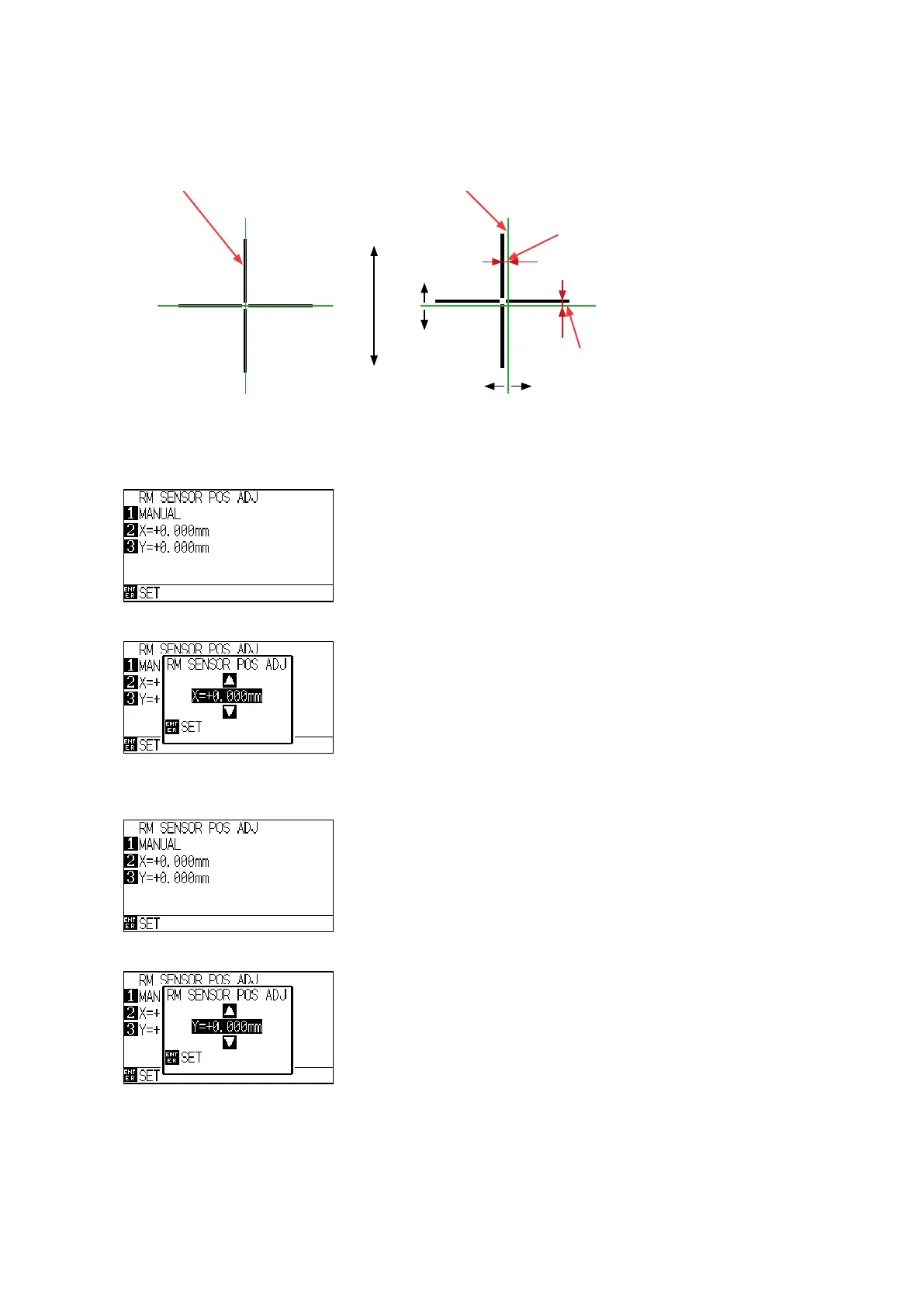 (18) Press the F3 key to input the Y-offset adjustment value from the measured distance.