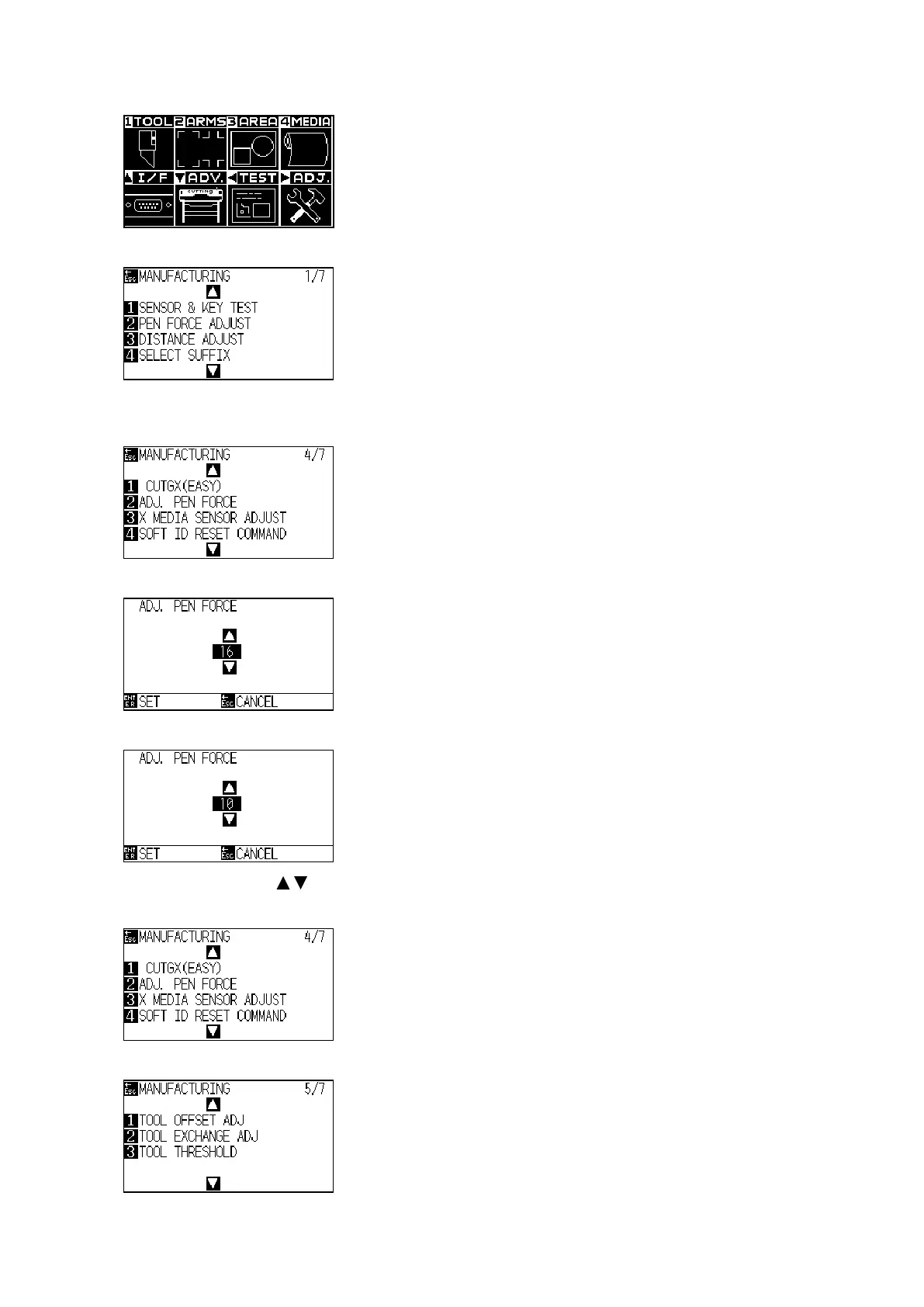 (6) Press the Right Position key to display the adjustment menu shown below.