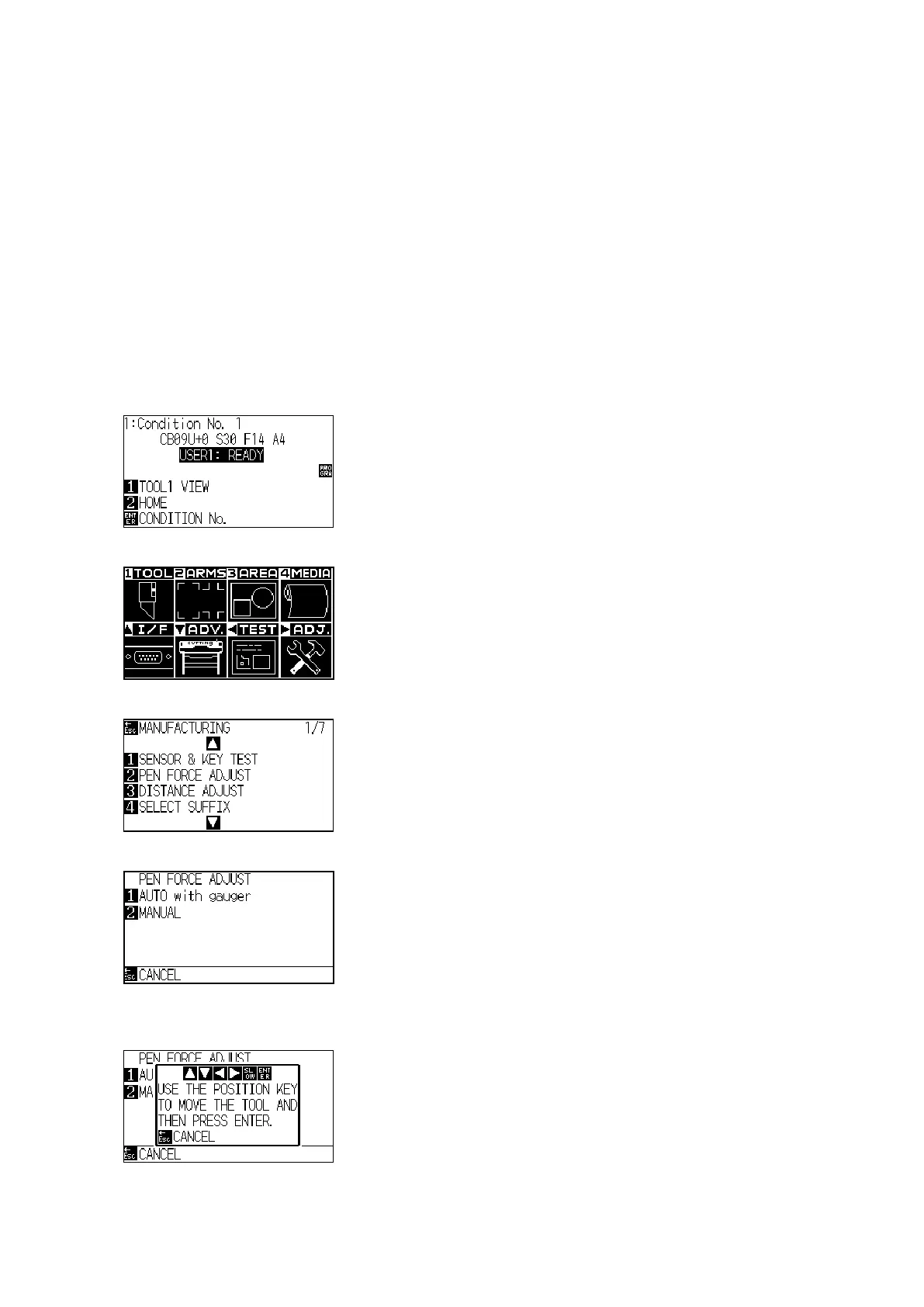 (7) Press the F2 key (PEN FORCE ADJUST) to display the following menu.