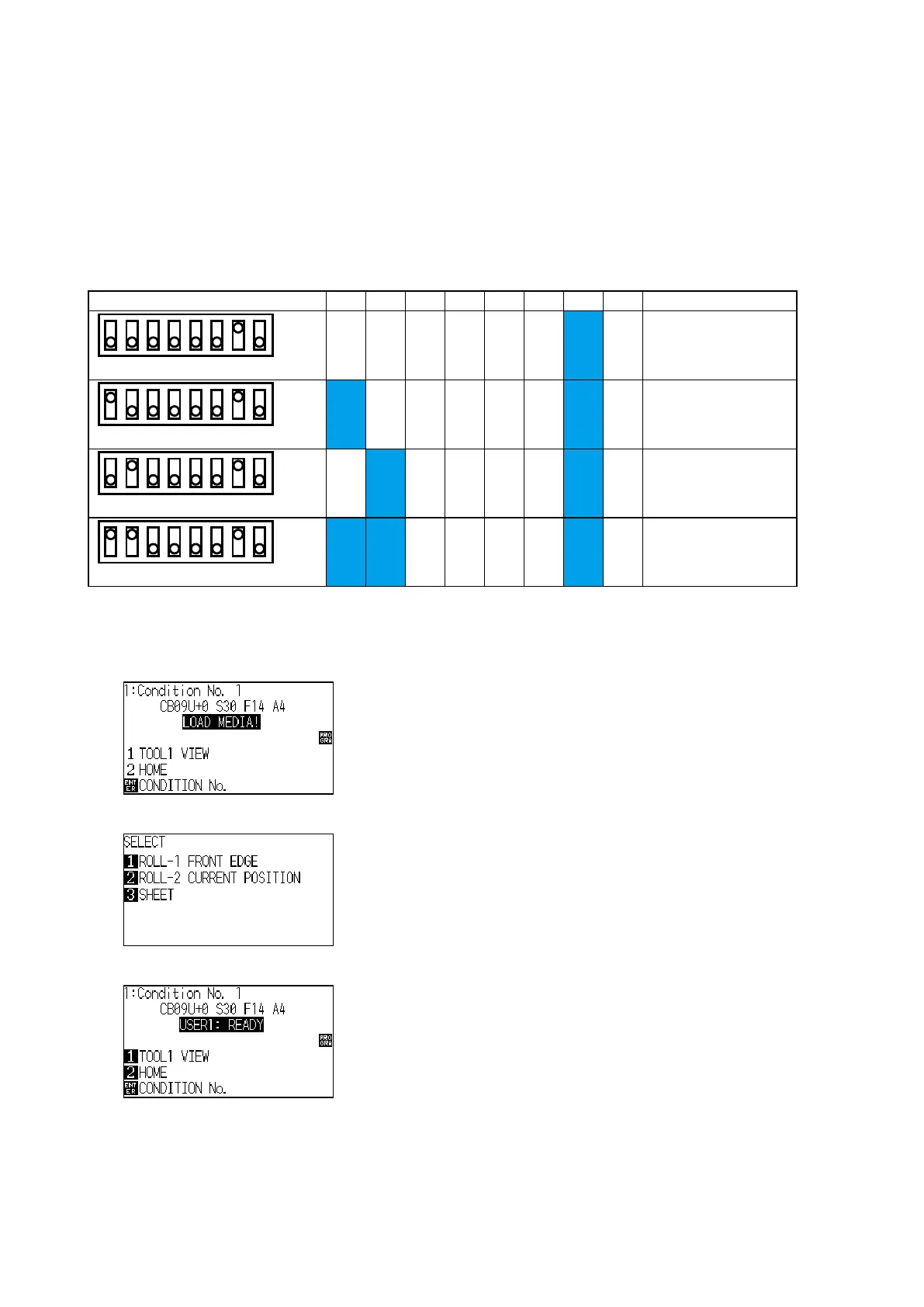(3) Load the copy paper to the plotter, and then the plotter displays the following menu.