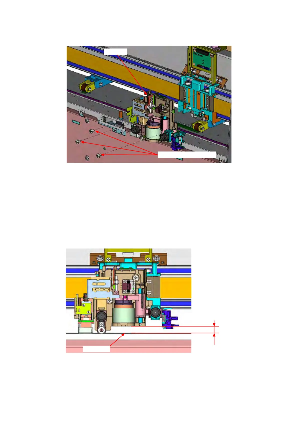 (2) Fasten the three M4L6 binding head screws to attach the pen block so that there is a gap of 10 mm