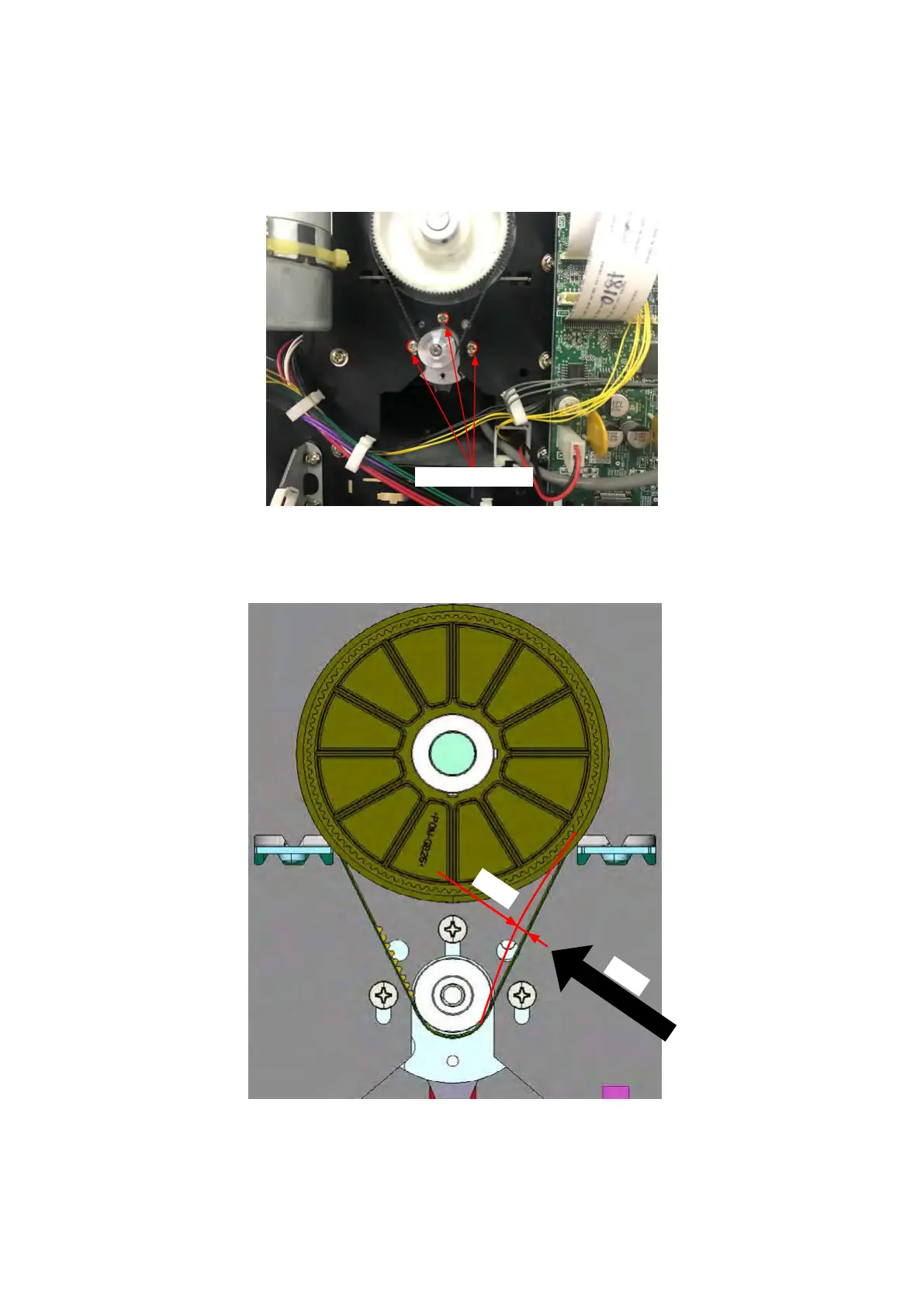 (1) Tighten the three screws attaching the X motor at the marking position, which was marked when