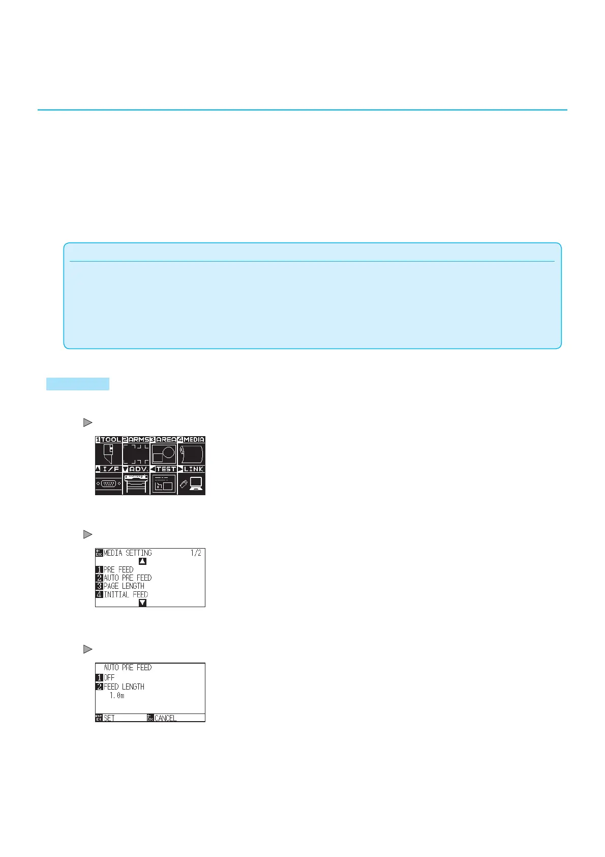 The setting for AUTO PRE FEED when cutting data is received is maintained even if the power is turned off.