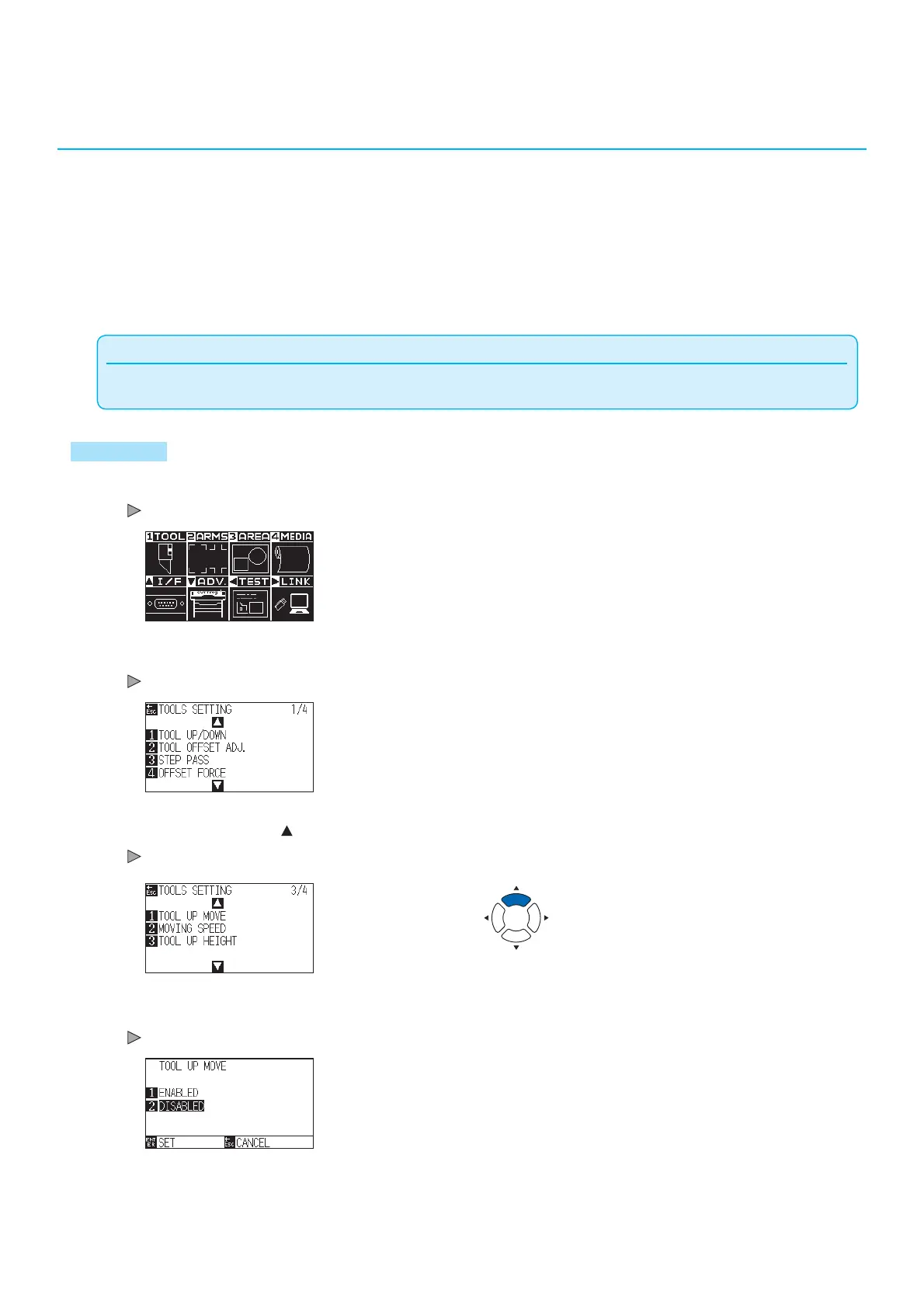 Cutting time can be reduced if it is set to "DISABLED", if the time to move the tool in raised status is wasteful.