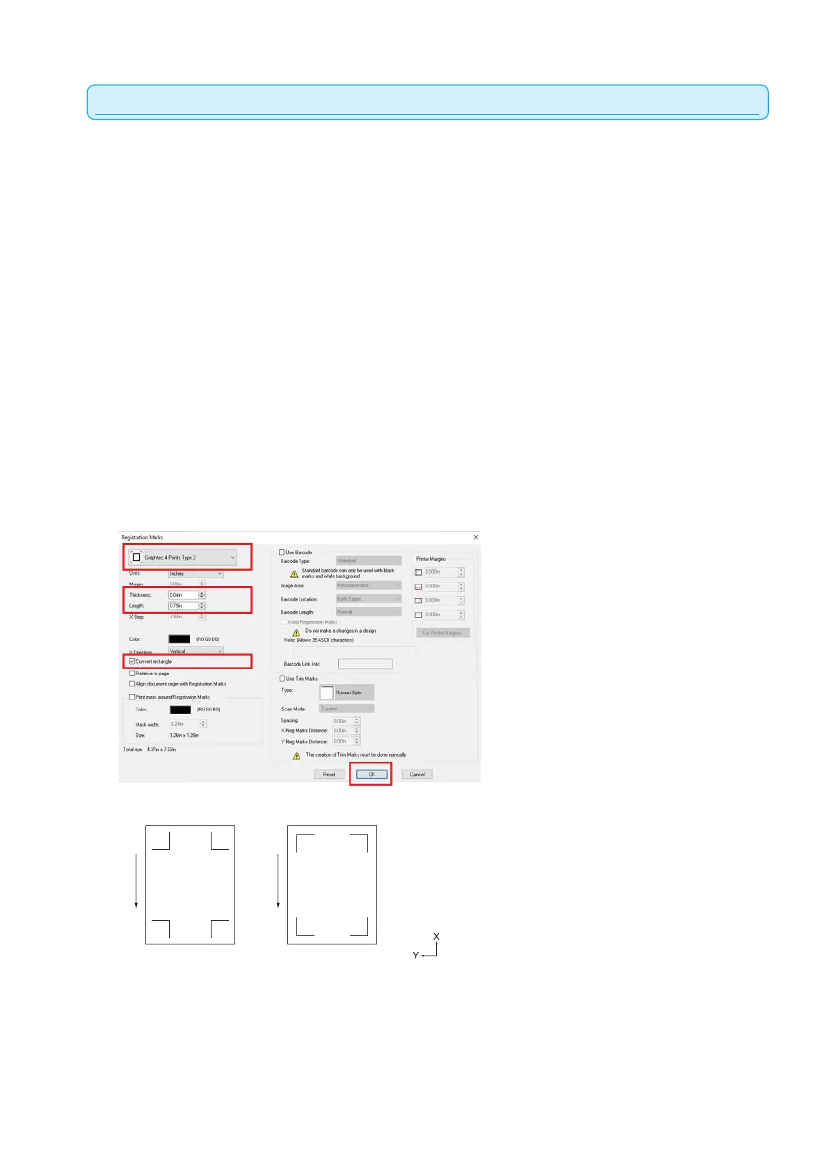 version X7 or earlier and, the Registration Marks screen
