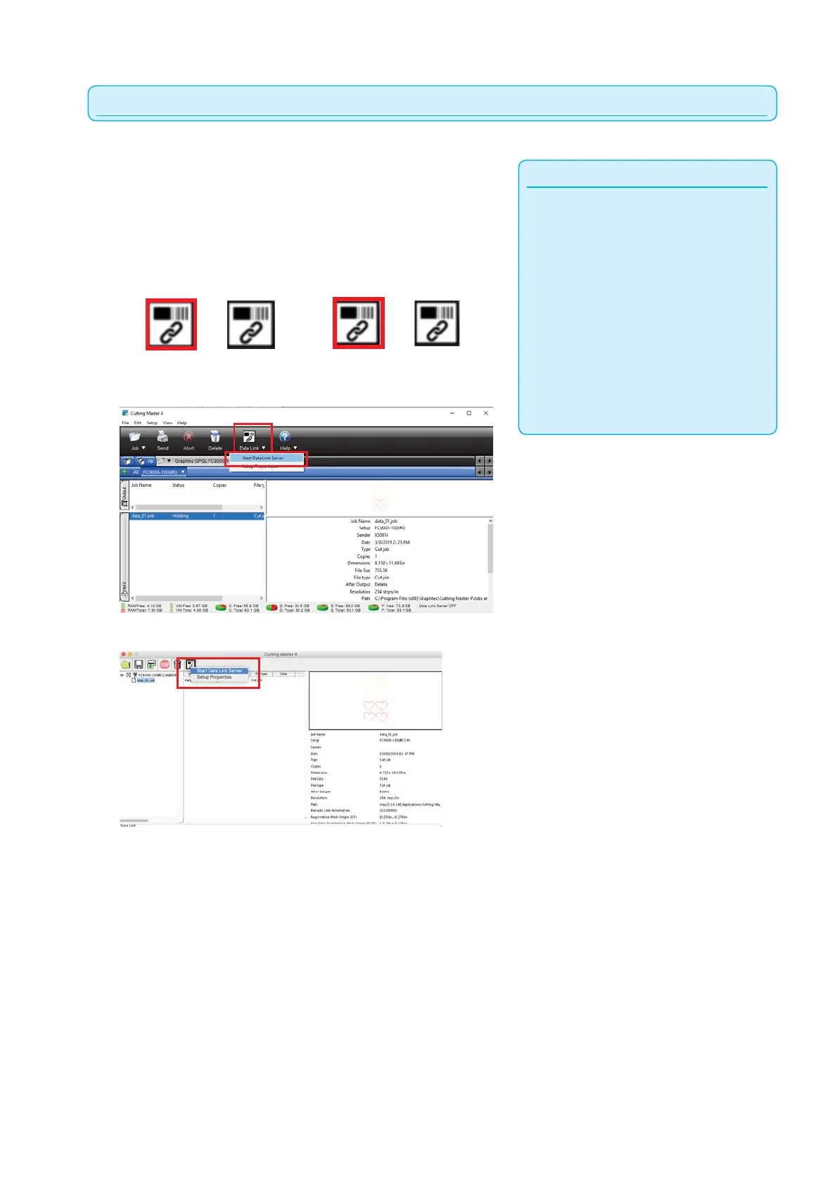 The cutting plotter supports only one data link