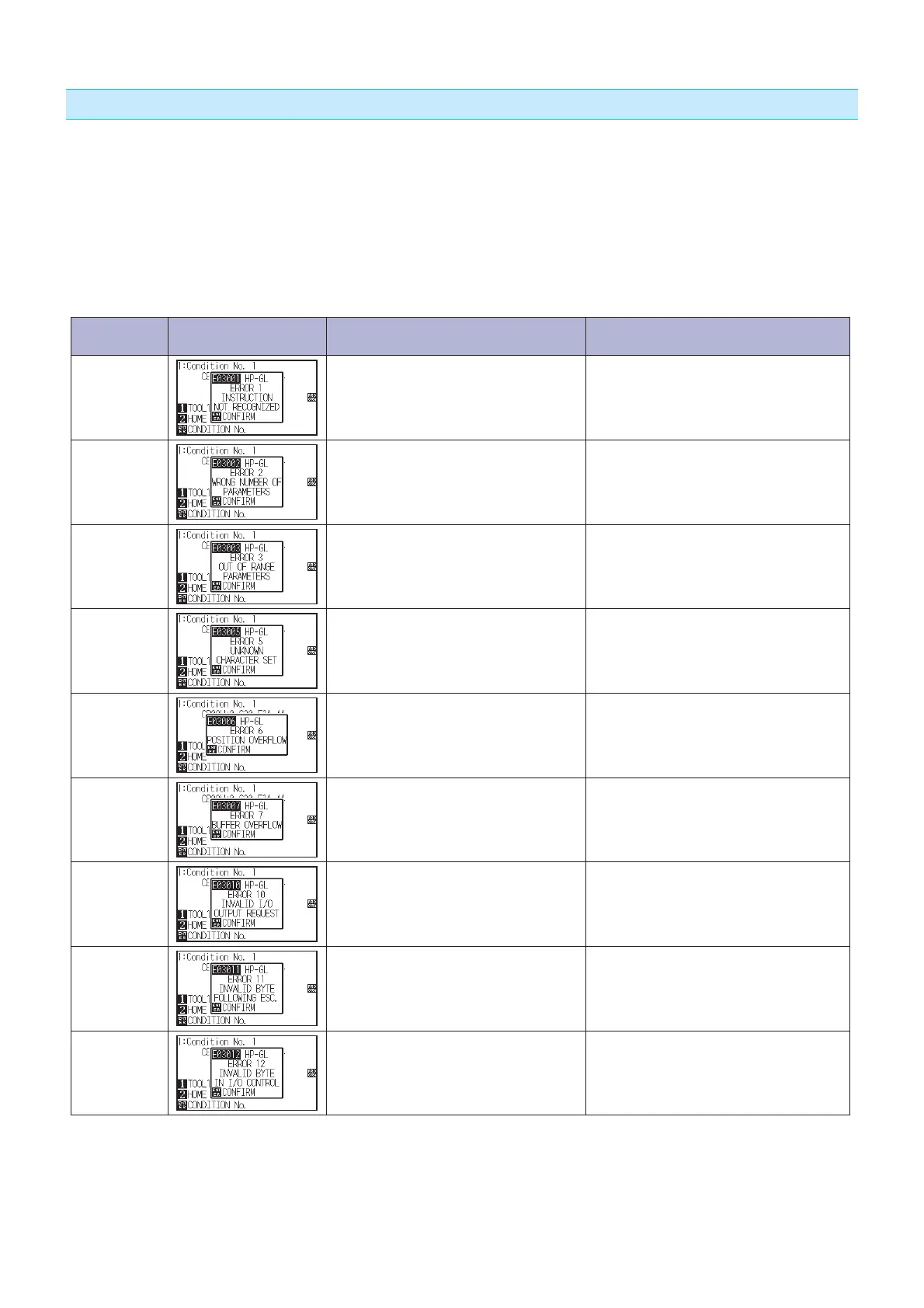 Error Messages in HP-GL Command Mode