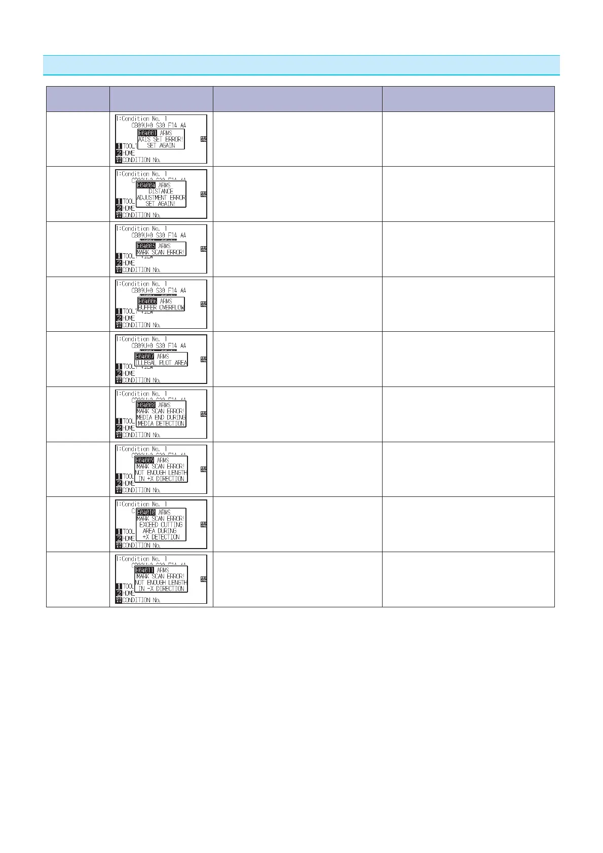 GRAPHTEC FC9000-160 - ARMS Error Messages