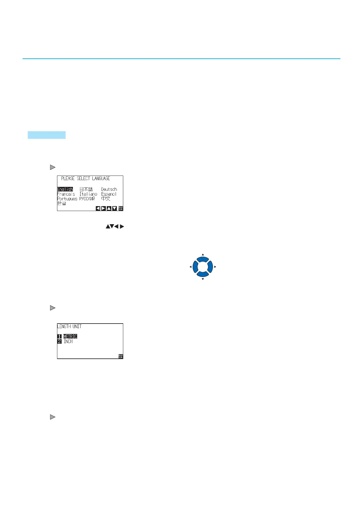 After the DISPLAY LANGUAGE is selected, the LENGTH UNIT screen