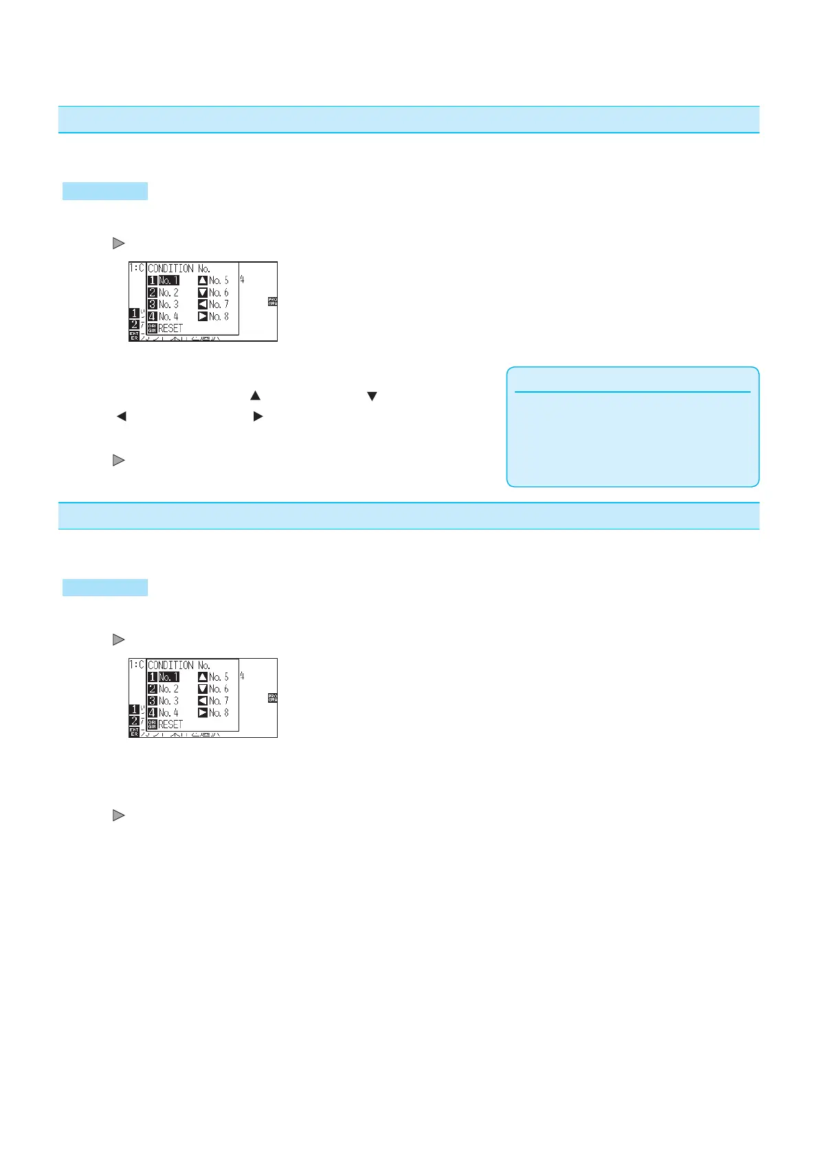 GRAPHTEC FC9000-160 - Change the Cutting Condition (Condition No.); Reset (Revert to the Initial State When the Power was Turned On.)