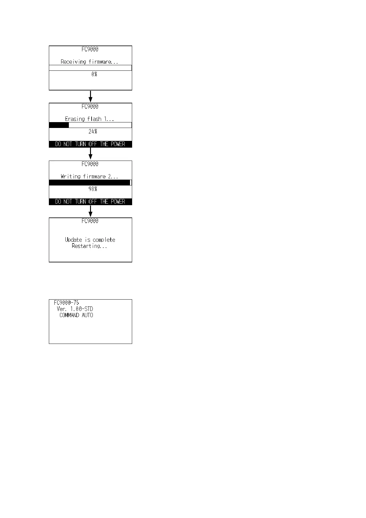 (6) Whileupdatingthermware,thefollowingmenuswillbedisplayed.