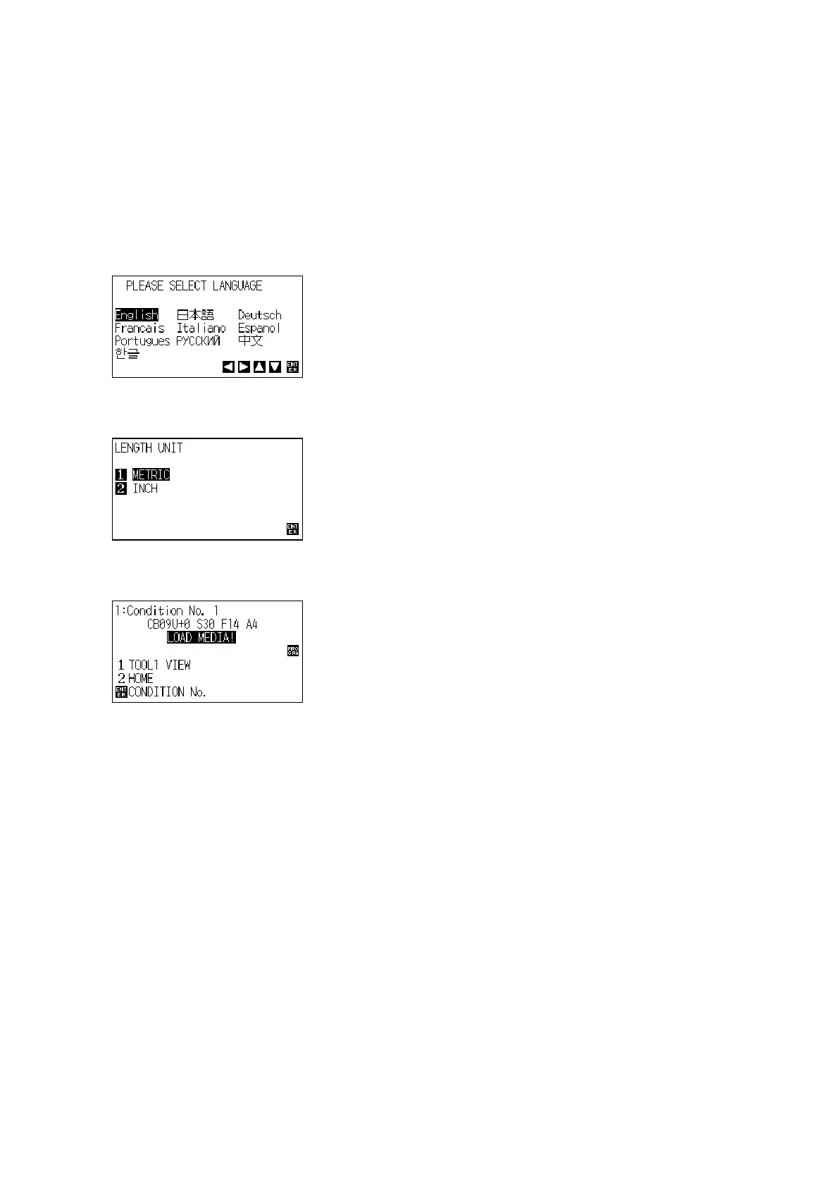 TheLanguageselectionmenuandtheLengthUnitselectionmenuaredisplayedattherstpoweron.