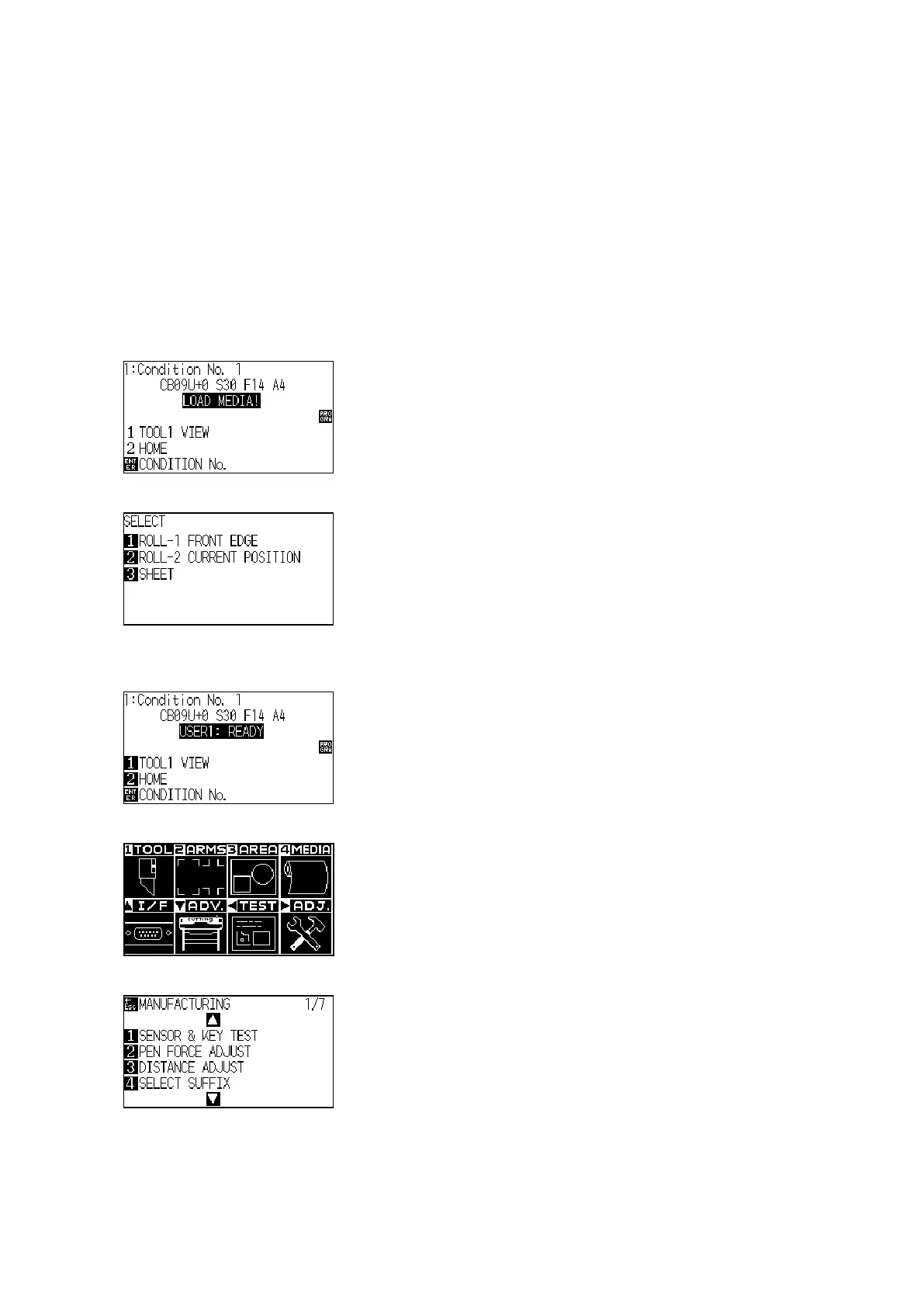(4) Load an A3 in the plotter, and then the plotter displays the following menu.